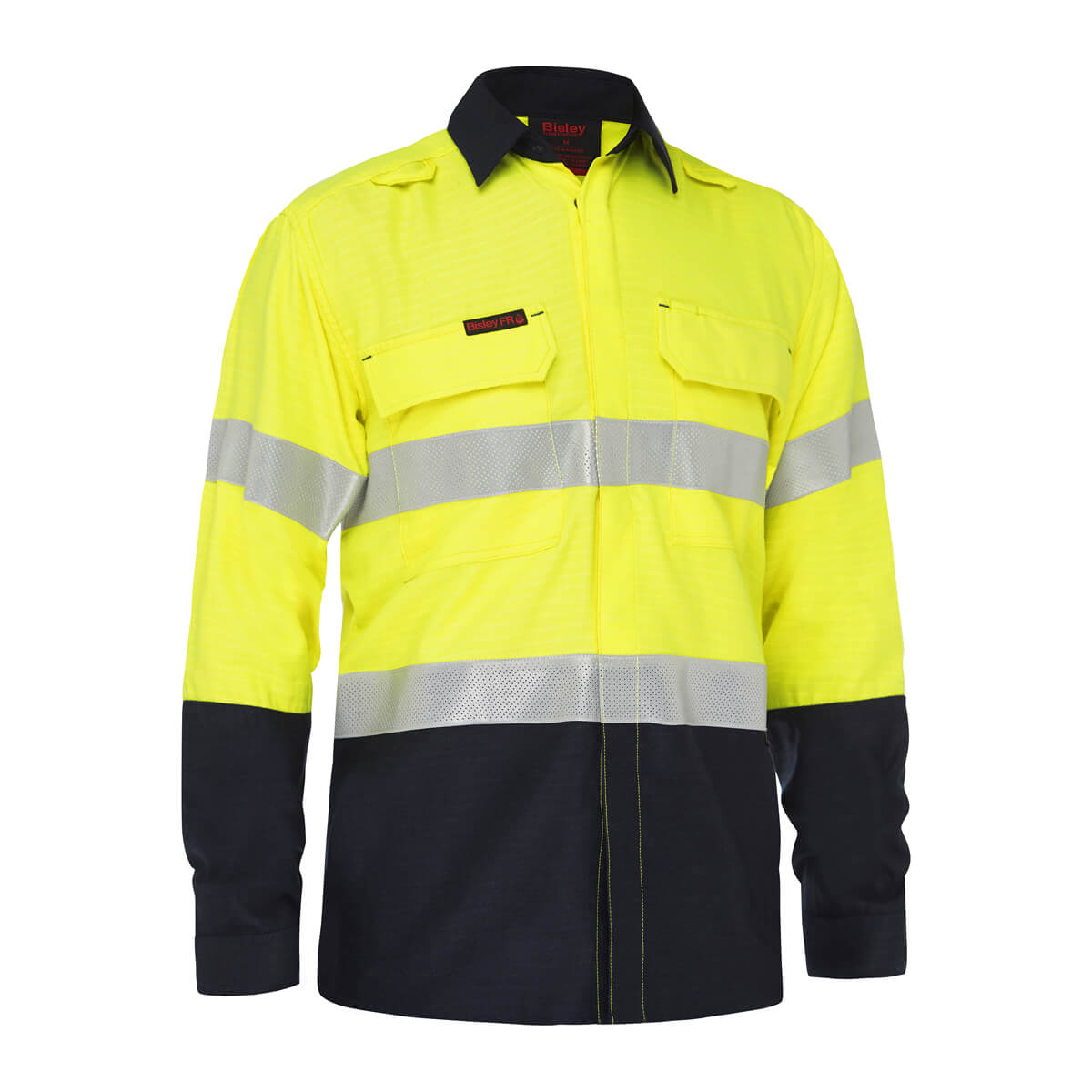 Bisley BS8338T Apex 160 Hi-Vis Taped Vented FR Shirt Yellow/Navy