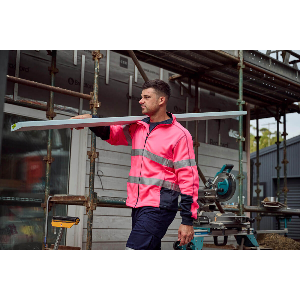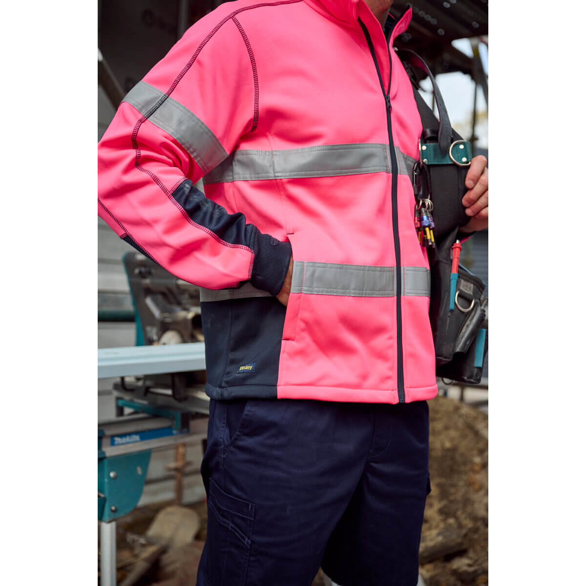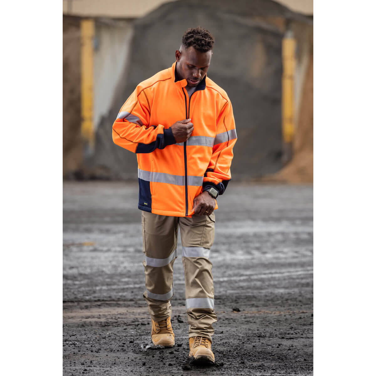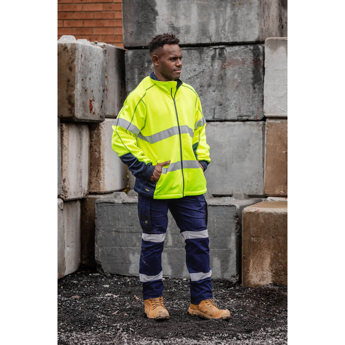 Bisley BK6611T Men’s Taped Hi Vis Zip Front Fleece Yellow/Navy