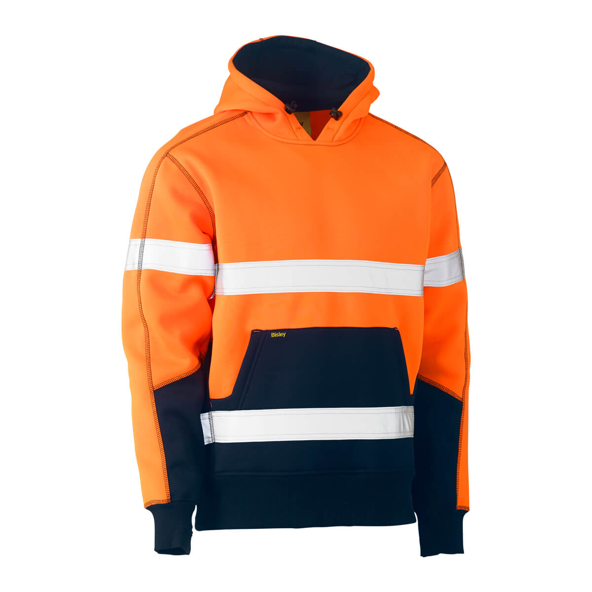Bisley BK6619T Hi-Vis Taped Pullover Polar Fleece Hoodie Yellow/Navy