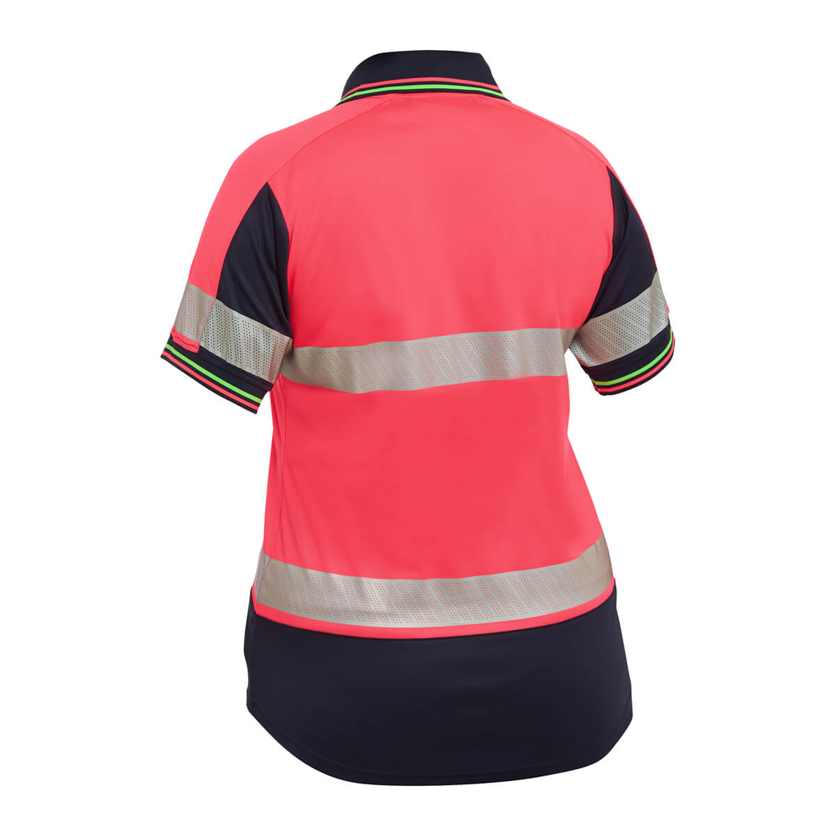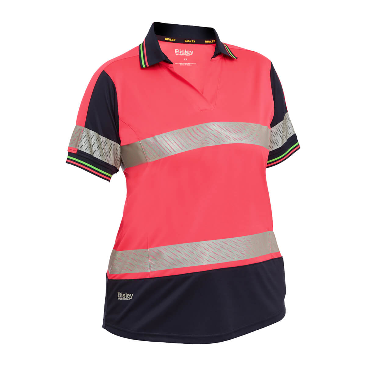Bisley BKL1225T Womens Hi-Vis Taped V-Neck Polo Short Sleeve Pink/Navy
