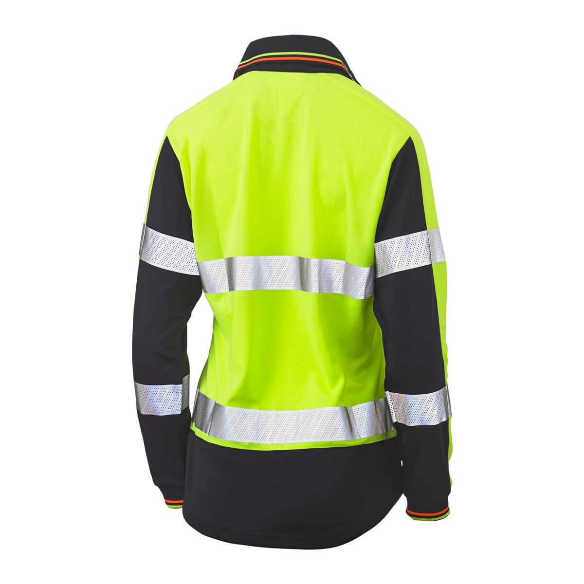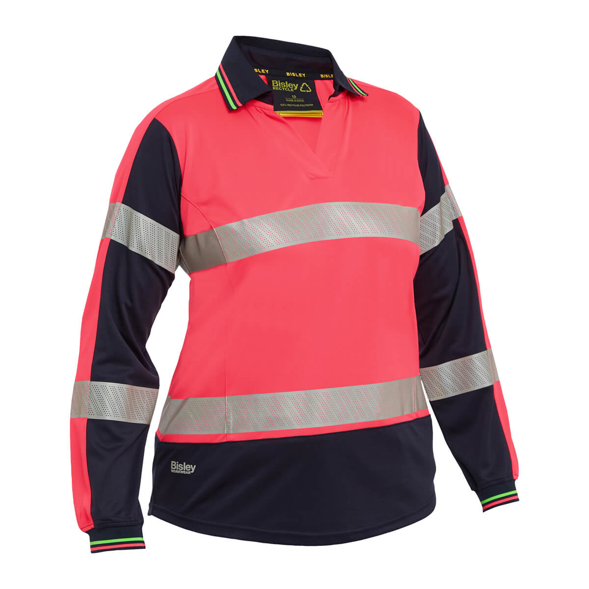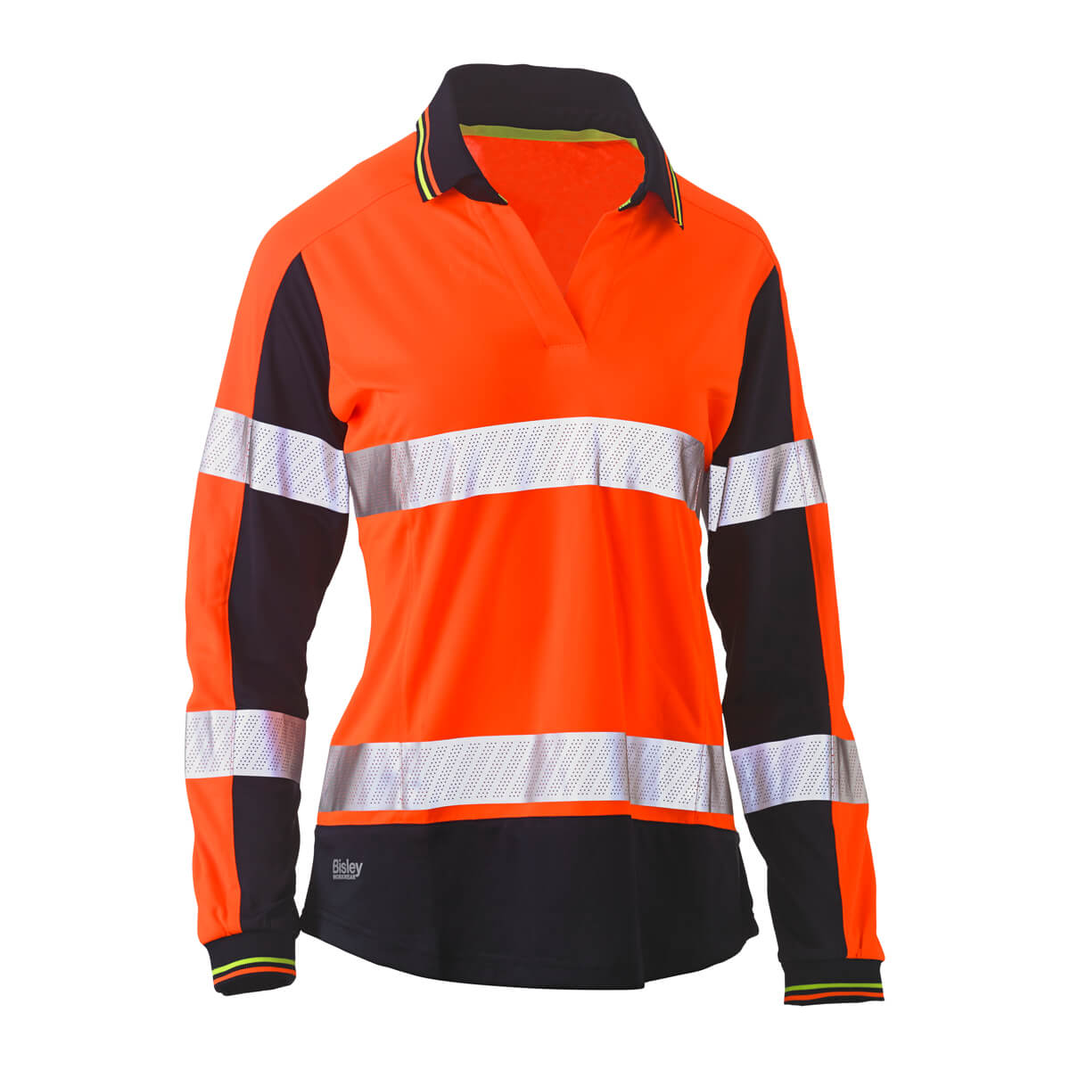Bisley BKL6225T Womens Hi-Vis Taped V-Neck Polo Long Sleeve Yellow/Navy