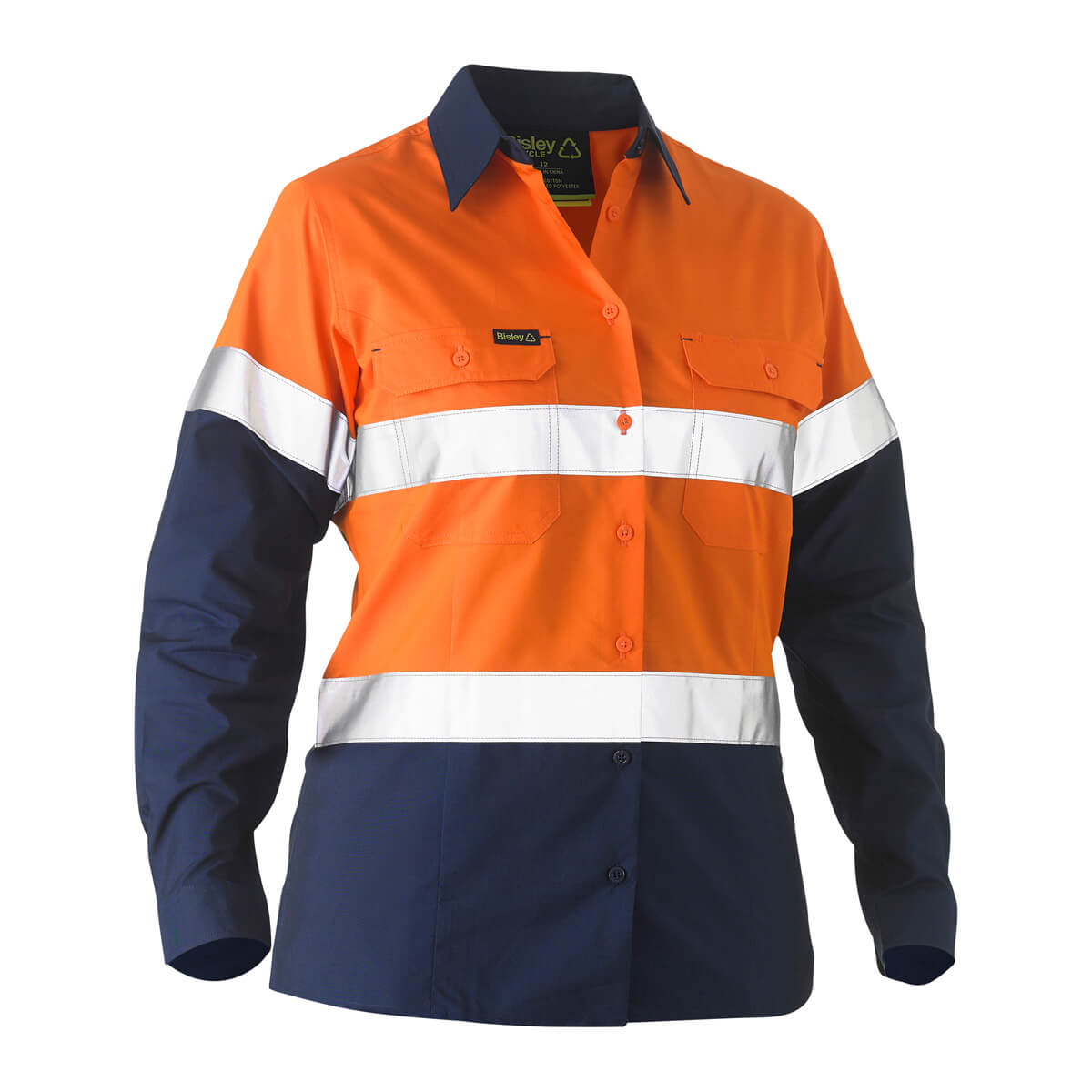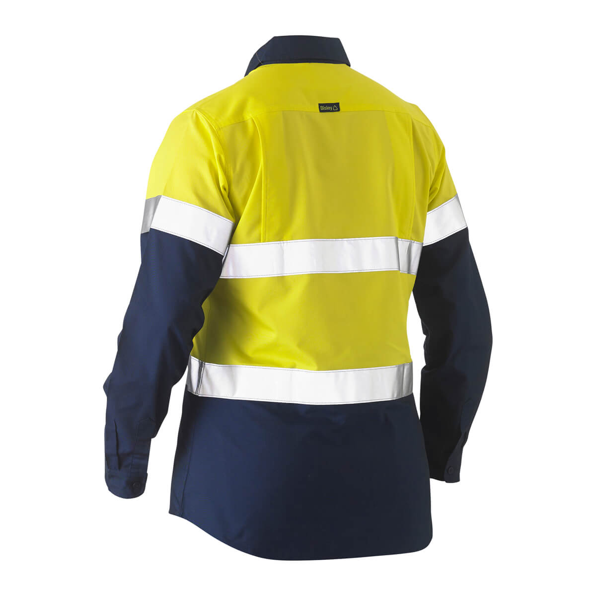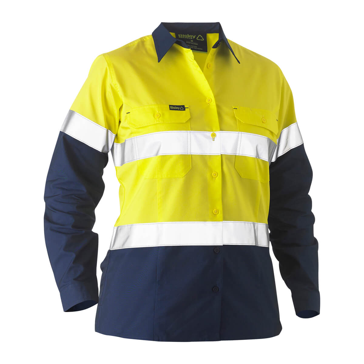 Bisley BL6996T Ladies Hi-Vis Taped Recycled Drill Shirt Yellow/Navy