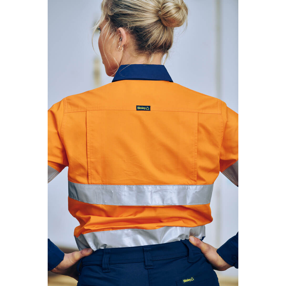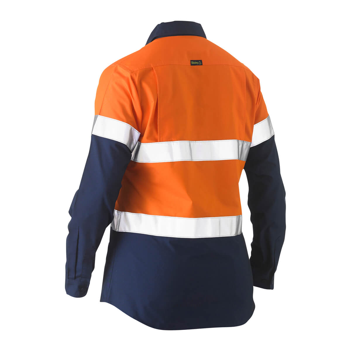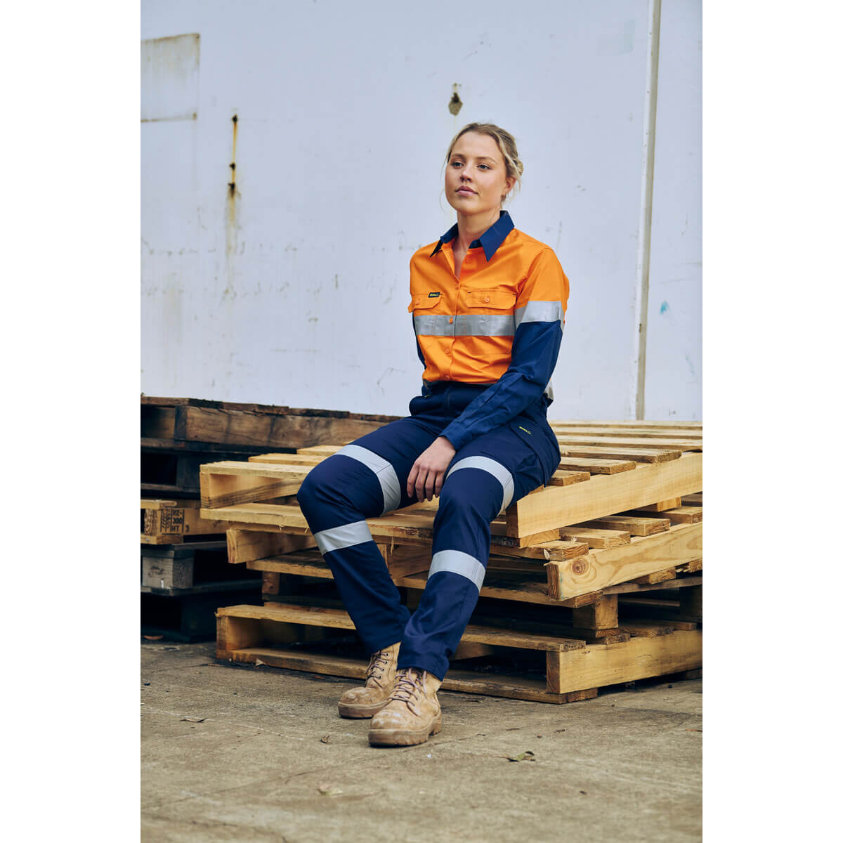 Bisley BL6996T Ladies Hi-Vis Taped Recycled Drill Shirt Yellow/Navy