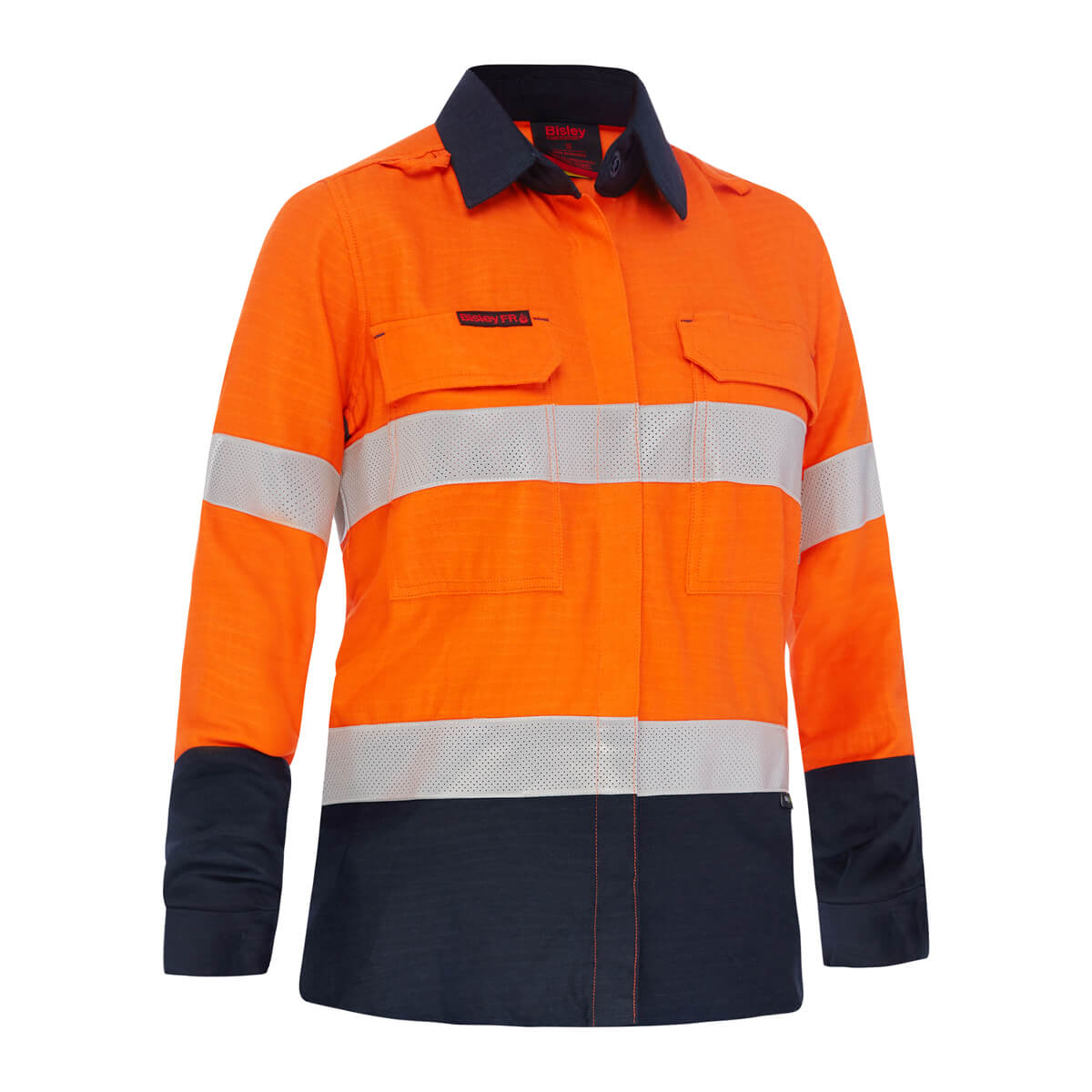 Bisley BL8438T APEX 185 Womens Taped Hi Vis FR Ripstop Vented Shirt Yellow/Navy