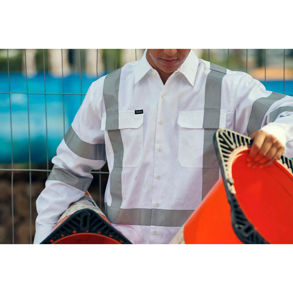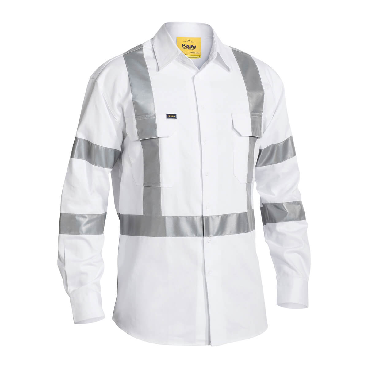 Bisley BS6807T Taped Night Work Cotton Drill Shirt Long Sleeve White