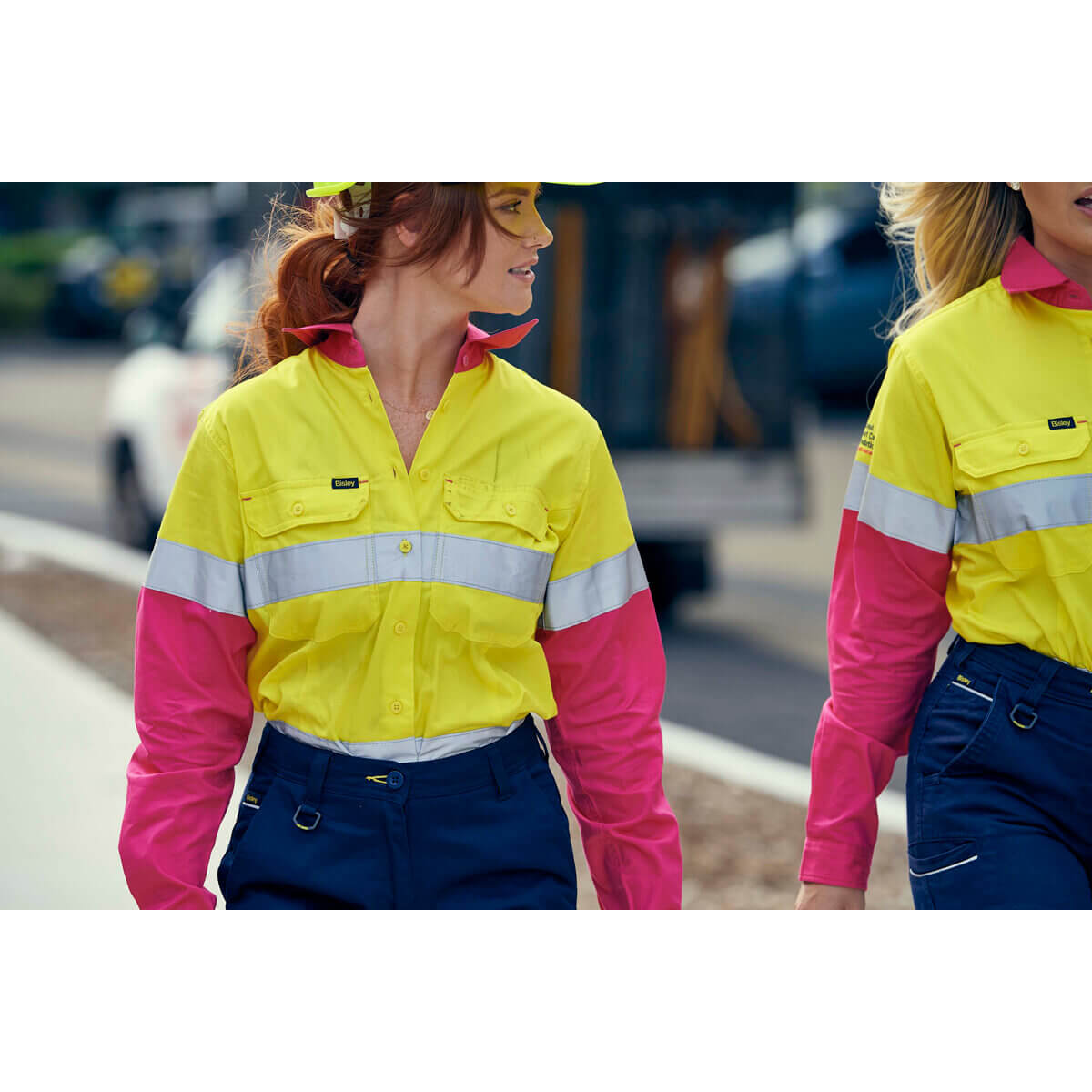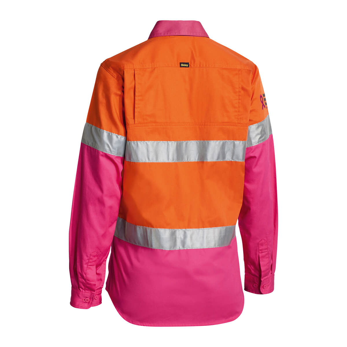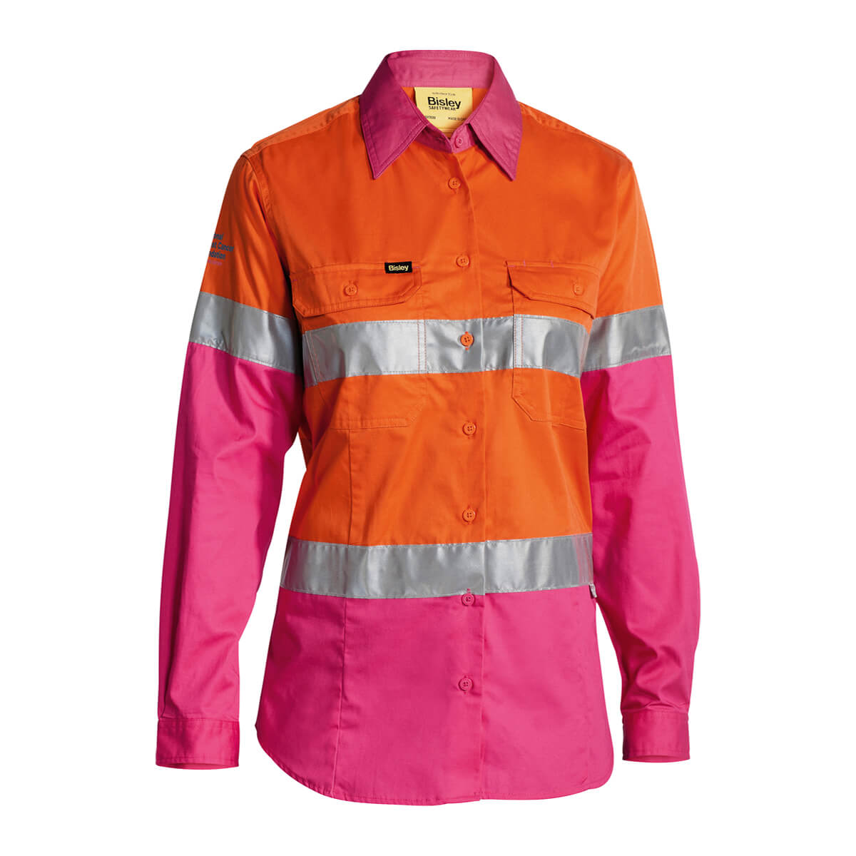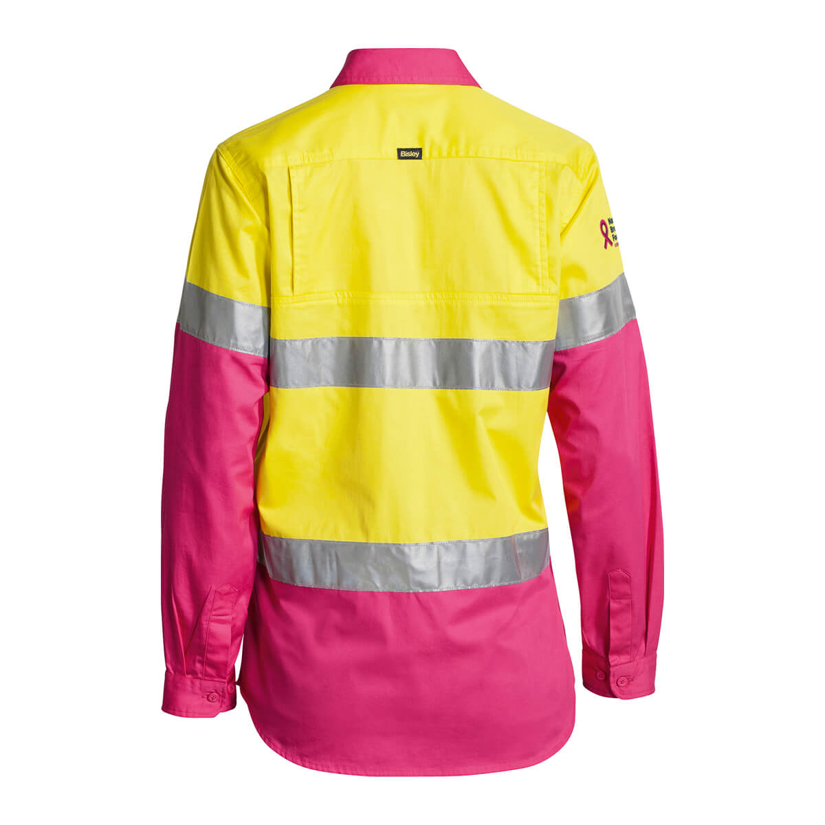 Bisley BL6696T NBCF Ladies Hi-Vis Taped Lightweight Cotton Drill Shirt Long Sleeve Yellow/Pink