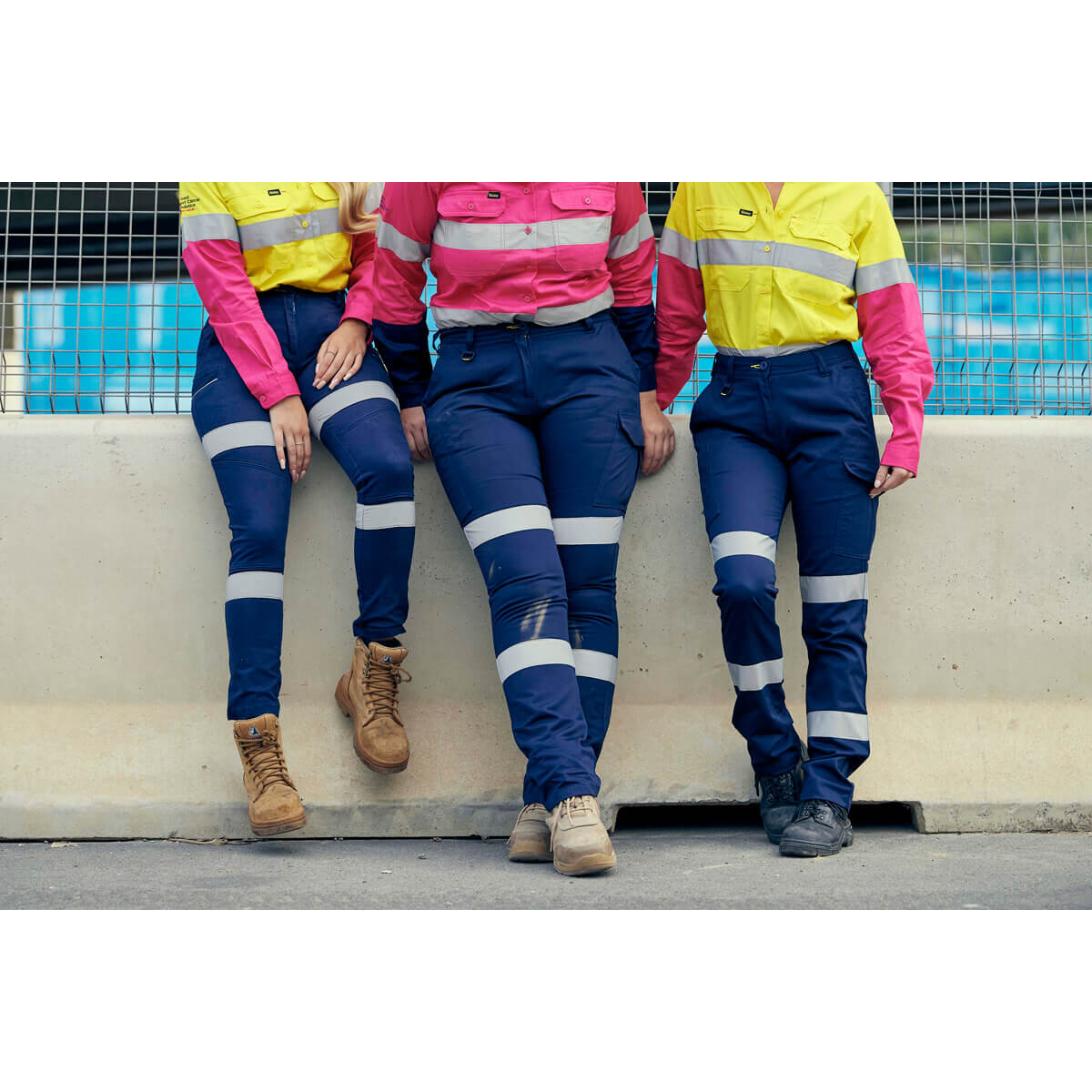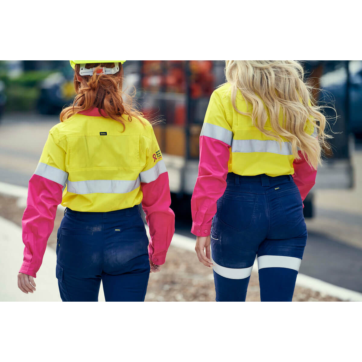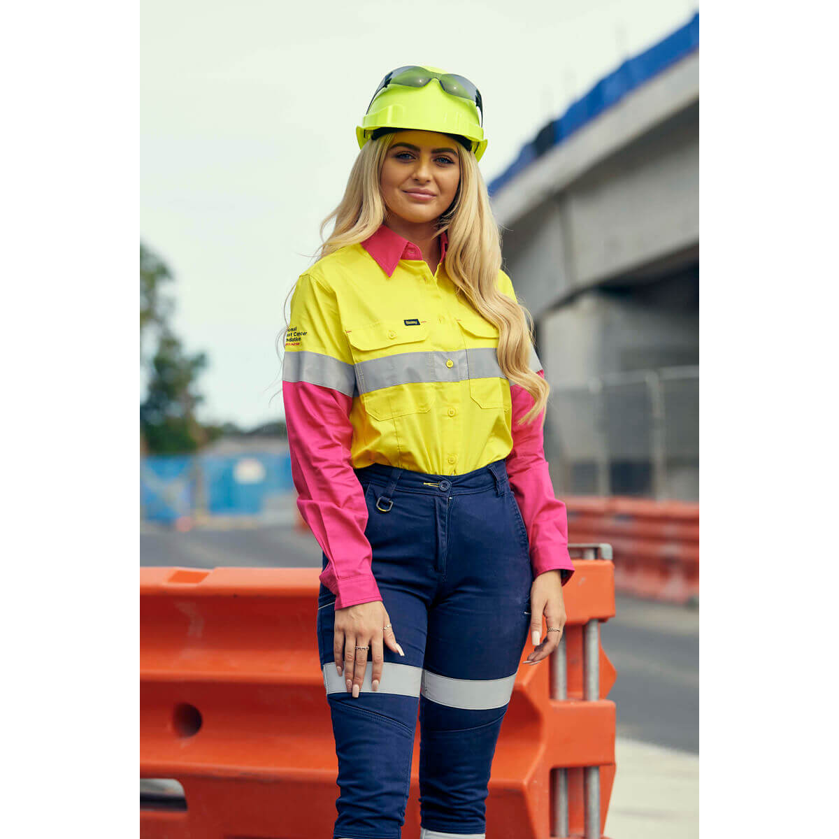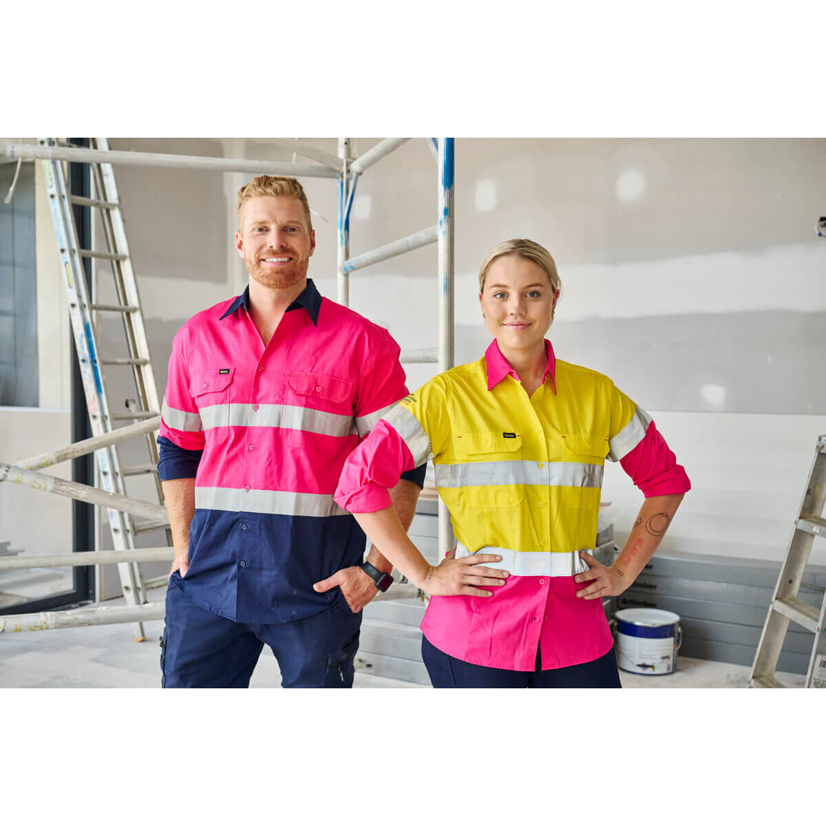 Bisley BL6696T NBCF Ladies Hi-Vis Taped Lightweight Cotton Drill Shirt Long Sleeve Yellow/Pink