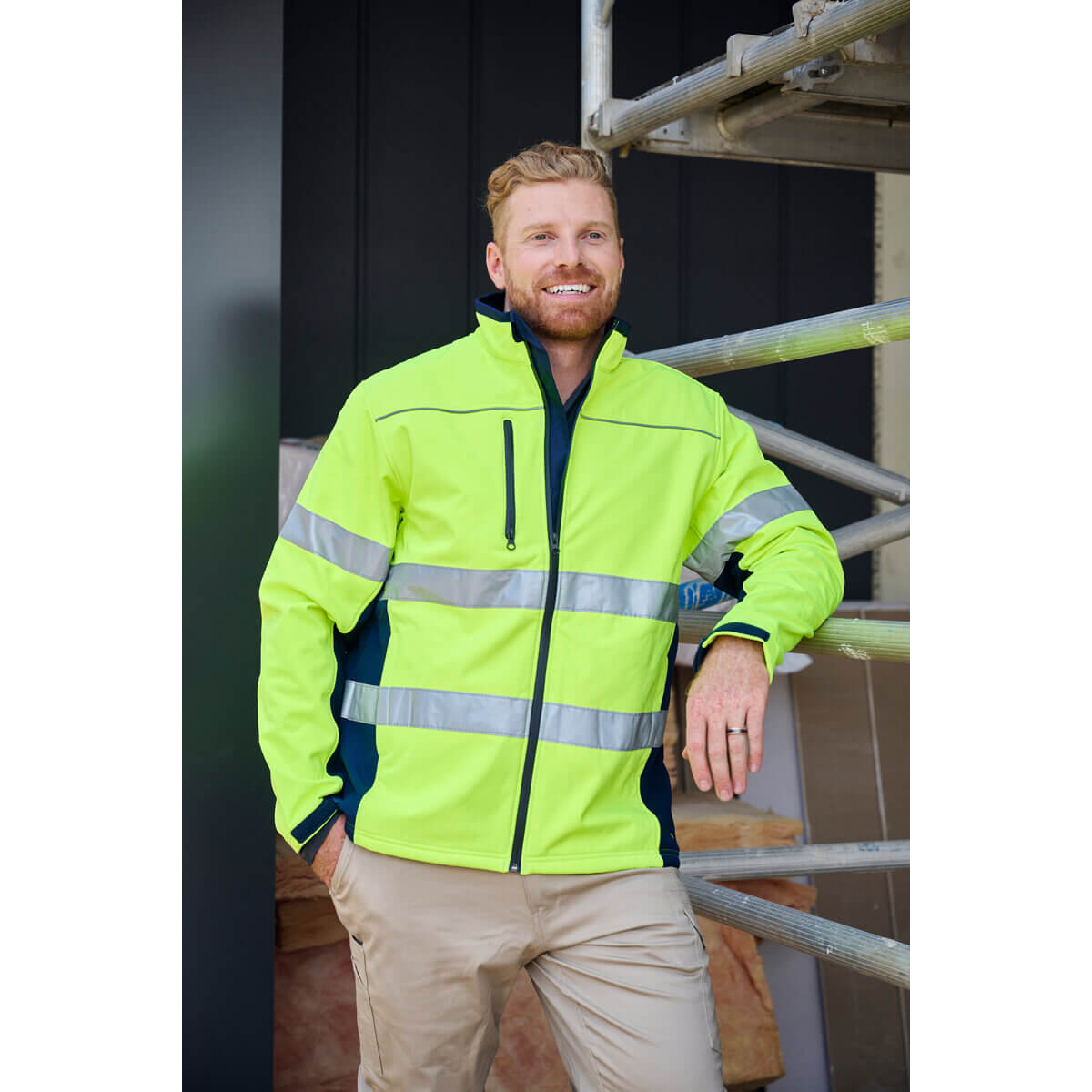 Bisley BJ6059T Hi-Vis Taped Soft Shell Jacket Yellow/Navy