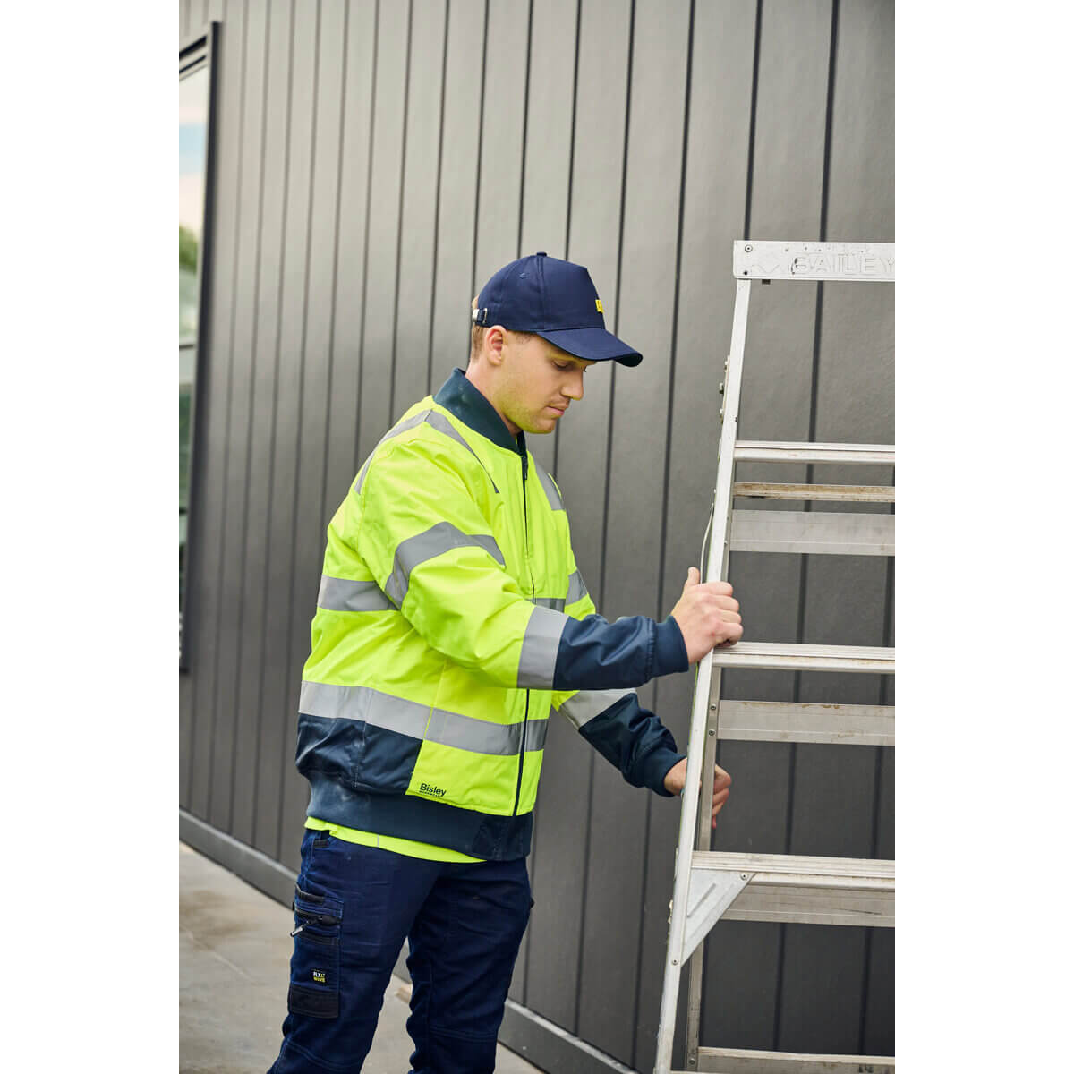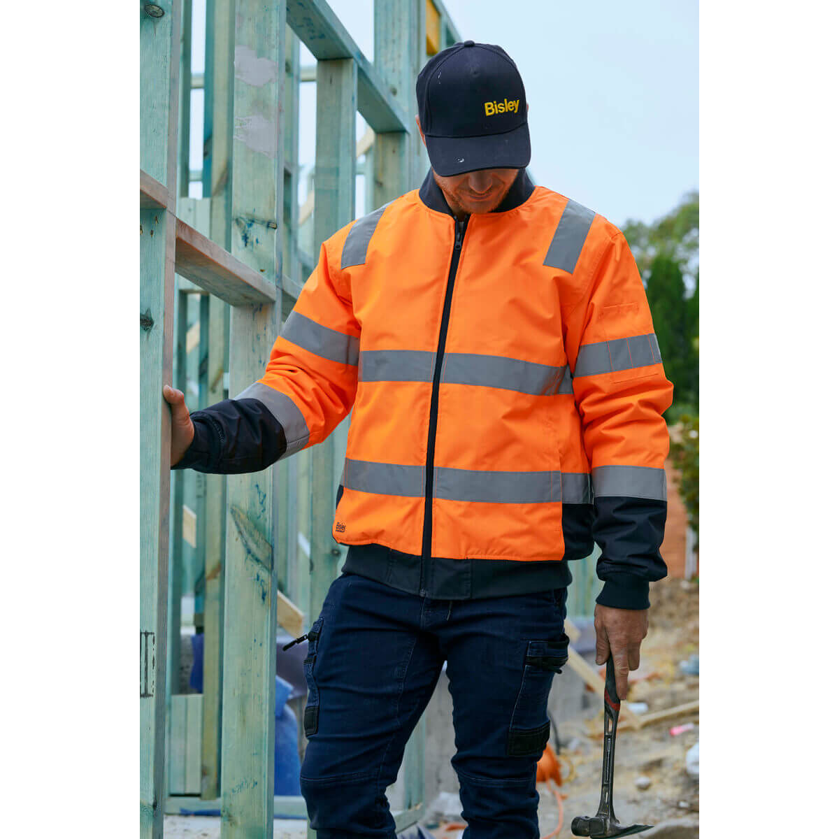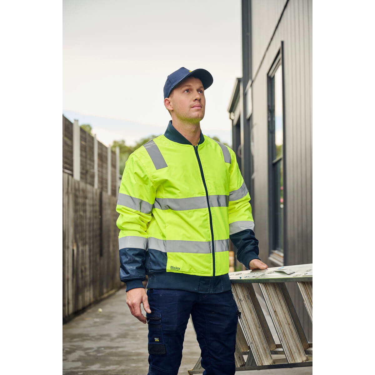 Bisley BJ6730T Hi-Vis Taped Bomber Jacket Yellow/Navy
