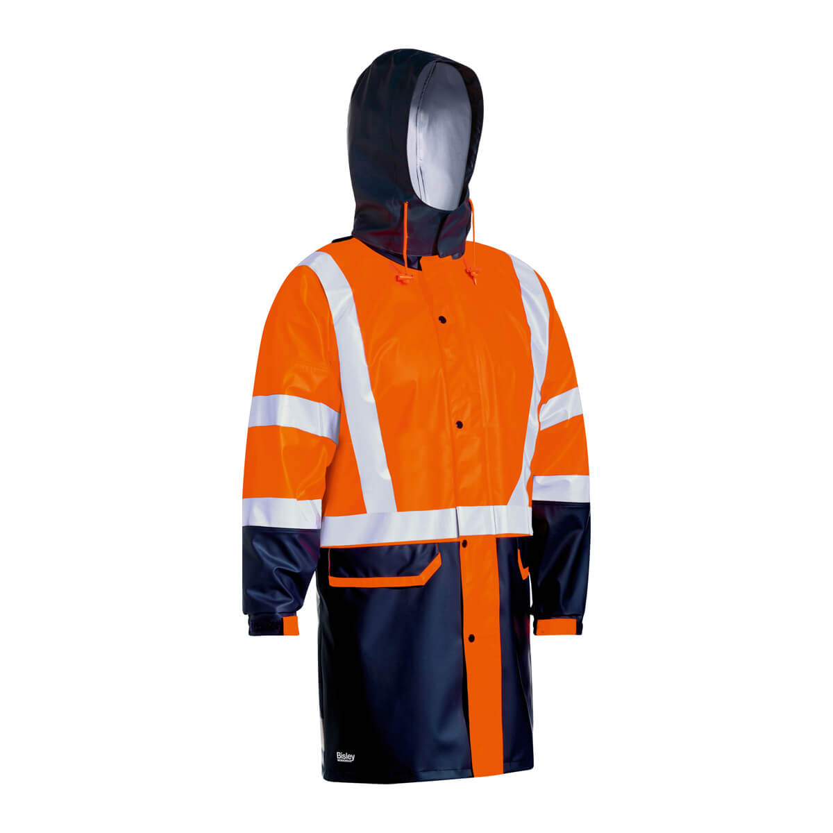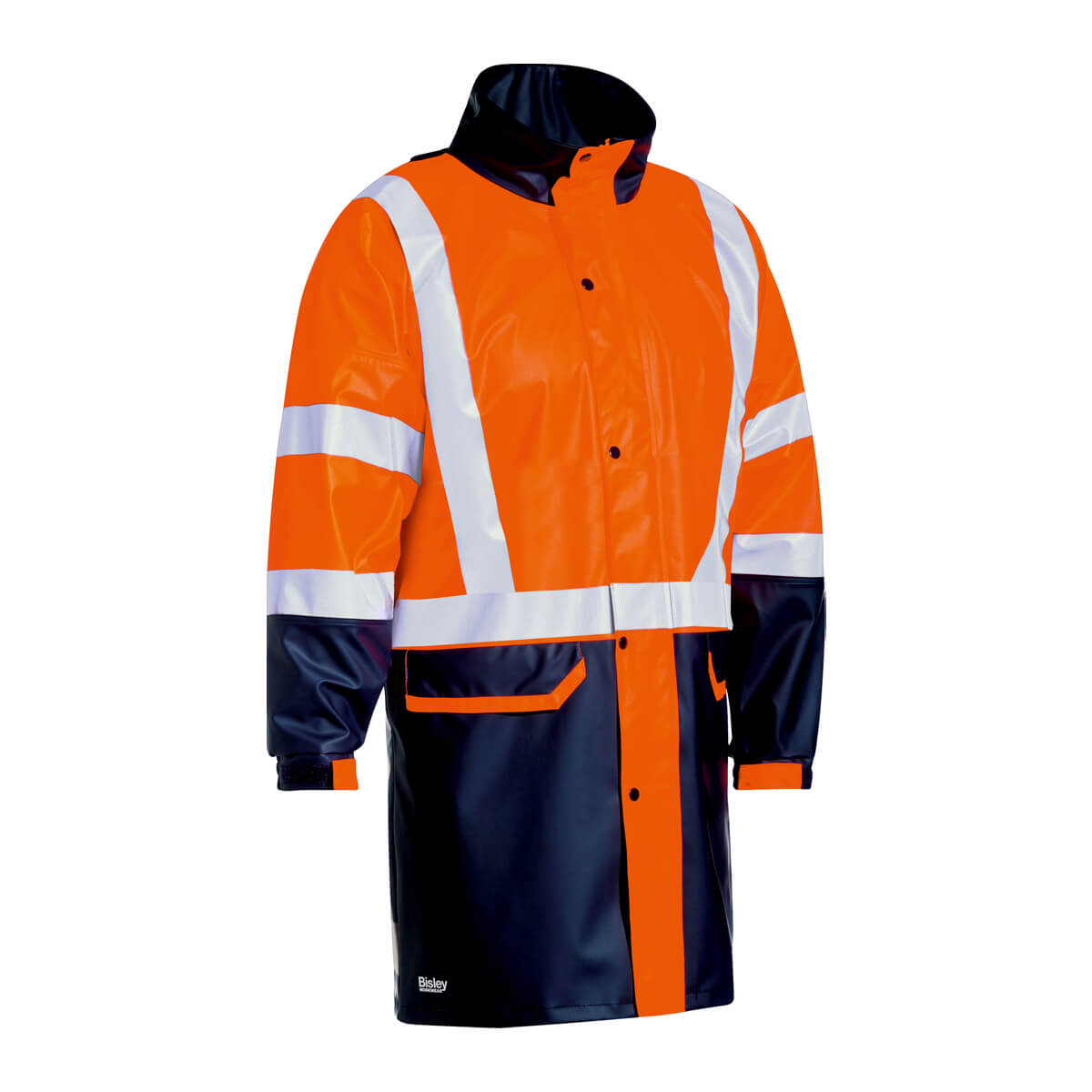 Bisley BJ6935HT Hi-Vis Taped Stretch PU Rain Coat Orange/Navy