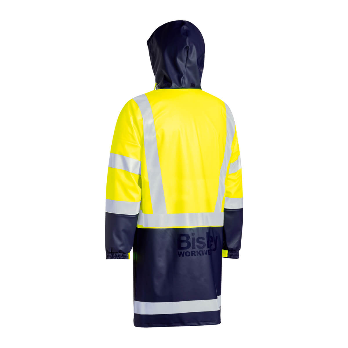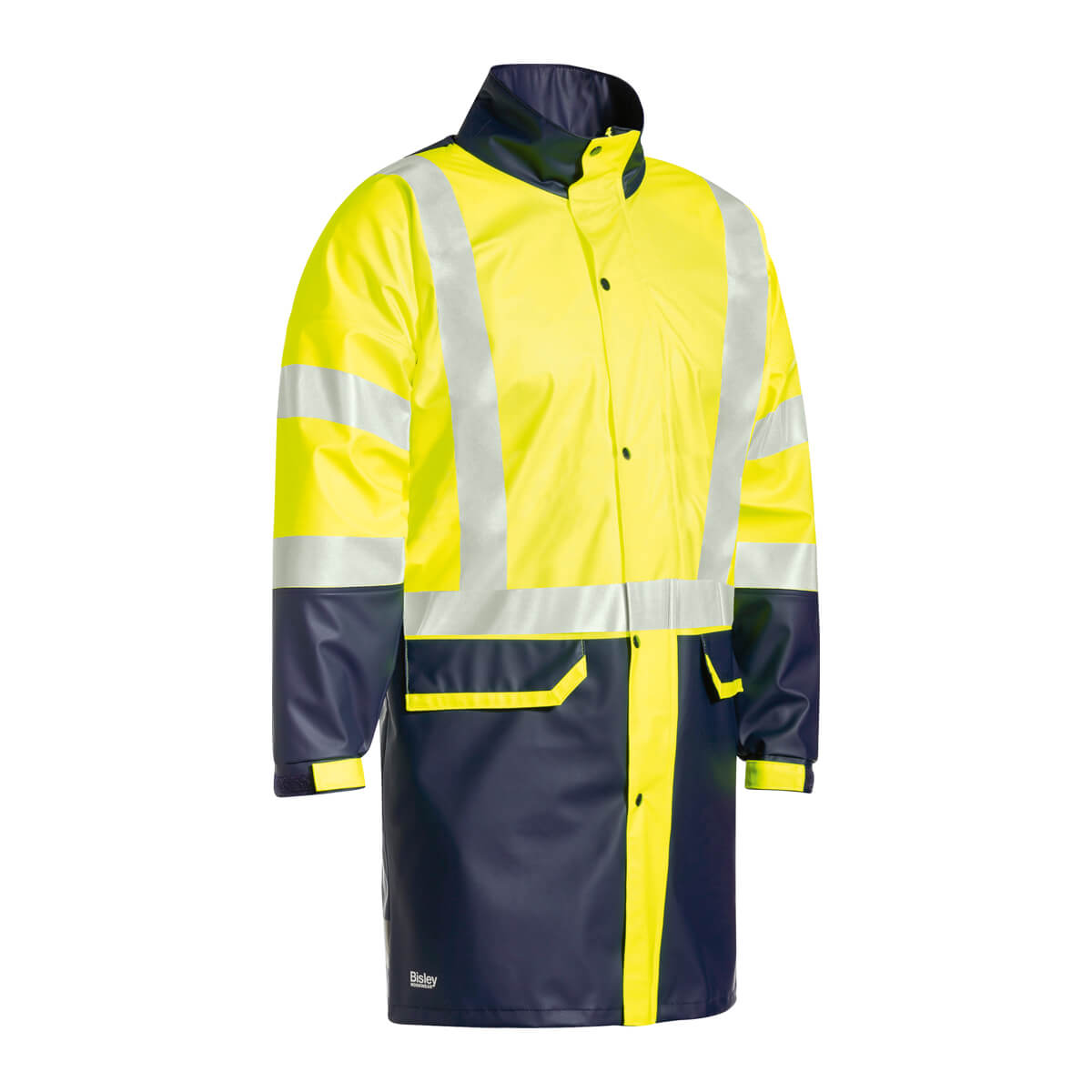 Bisley BJ6935HT Hi-Vis Taped Stretch PU Rain Coat Yellow/Navy