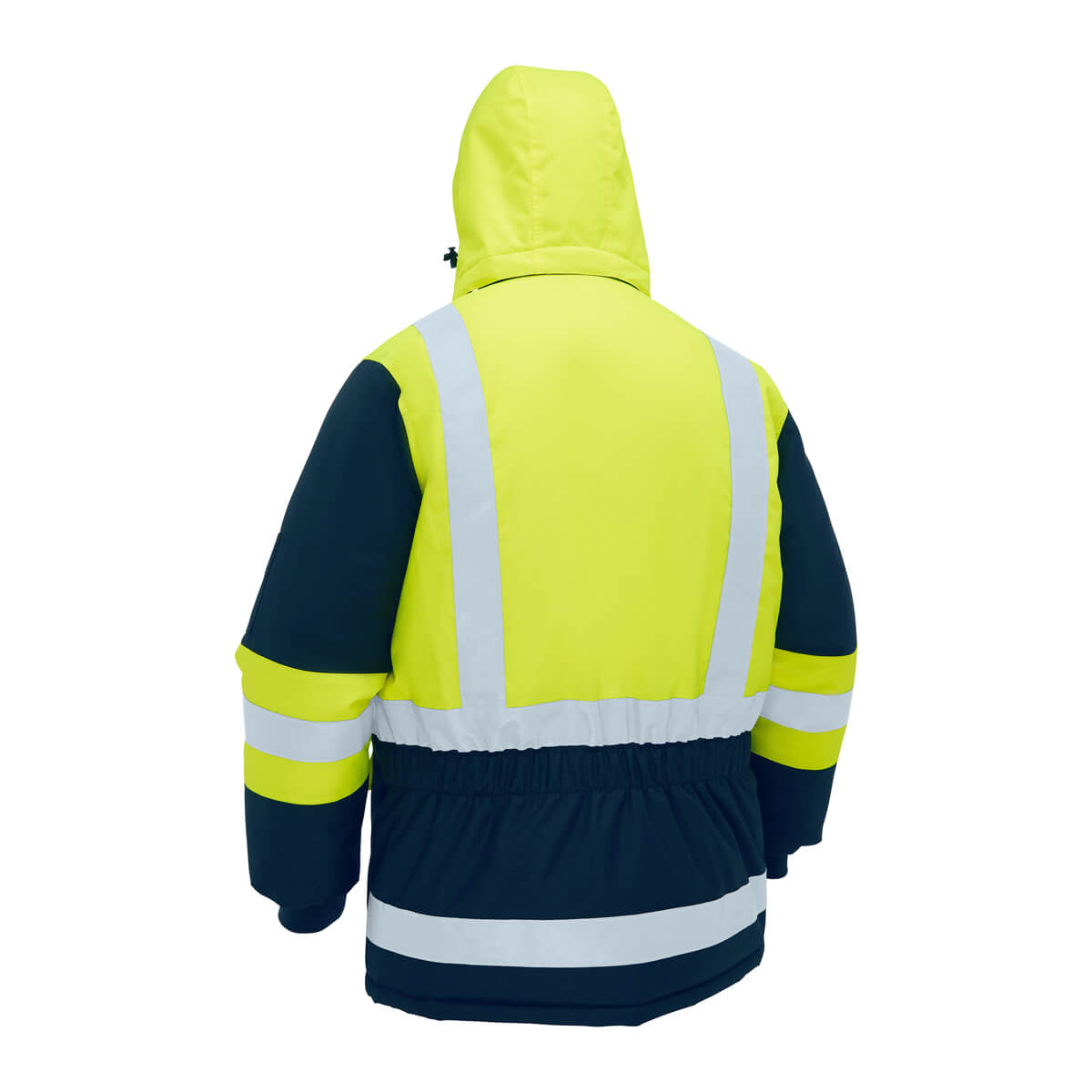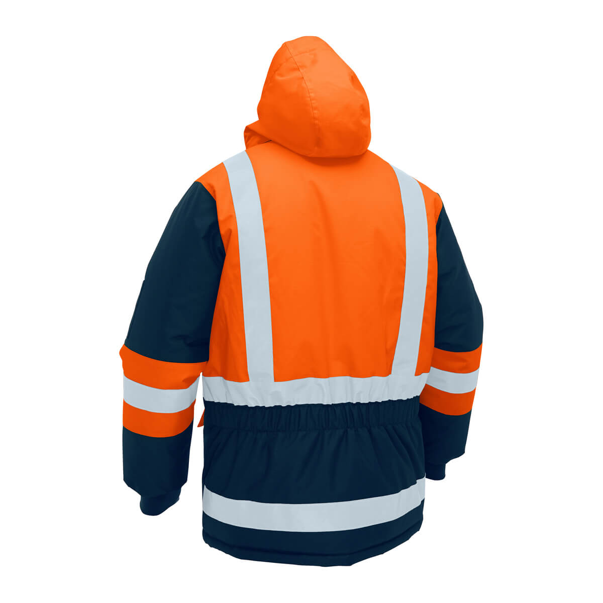 - Reflective taped H pattern with additional reflective tape at back hem
