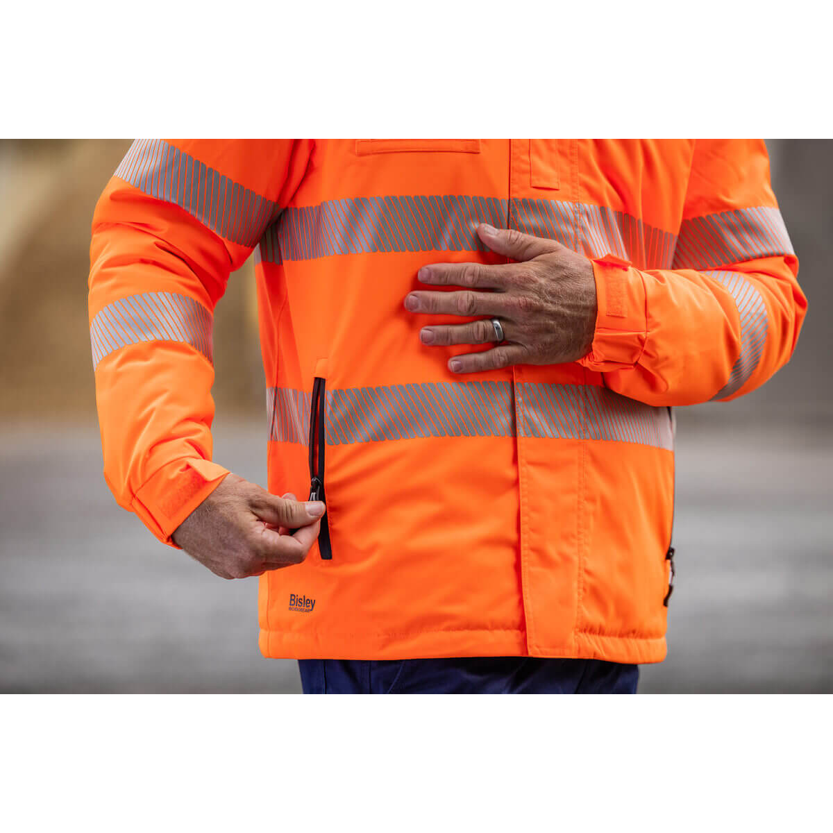 Bisley BJ6842T Taped Hi Vis Heated Jacket With Hood Orange