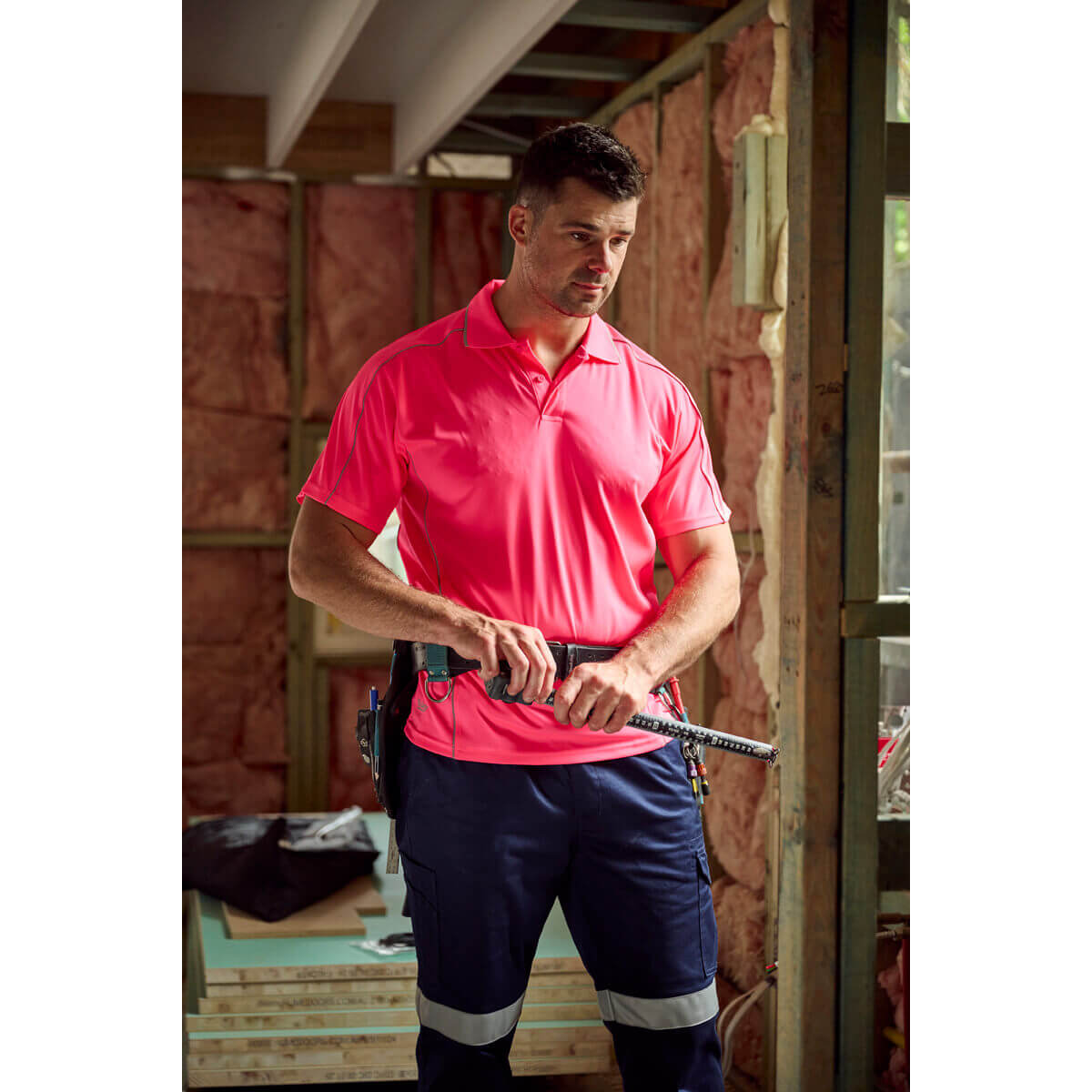 Bisley BK1425 Cool Mesh Polo Shirt with Reflective Piping Short Sleeve Navy