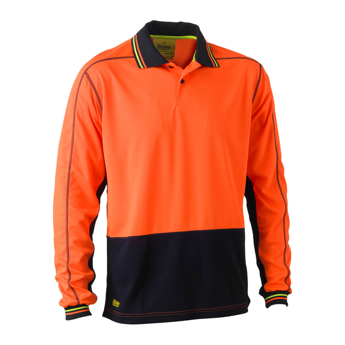 Bisley BK6219 Two Tone Hi-Vis Polyester Mesh Polo Long Sleeve Orange/Navy
