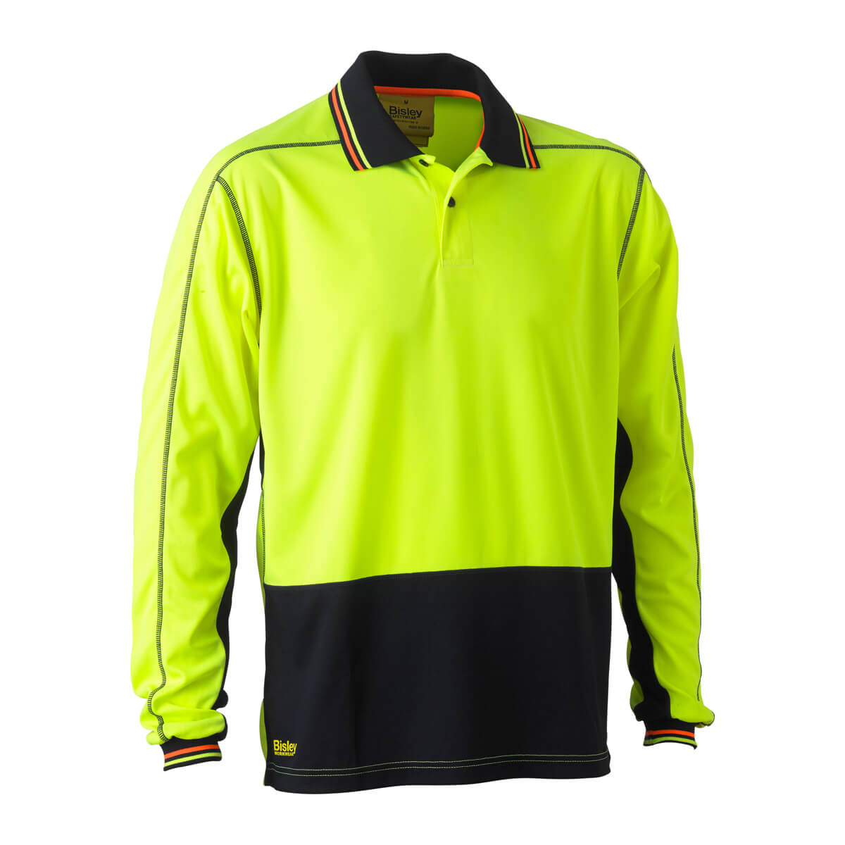 Bisley BK6219 Two Tone Hi-Vis Polyester Mesh Polo Long Sleeve Yellow/Navy