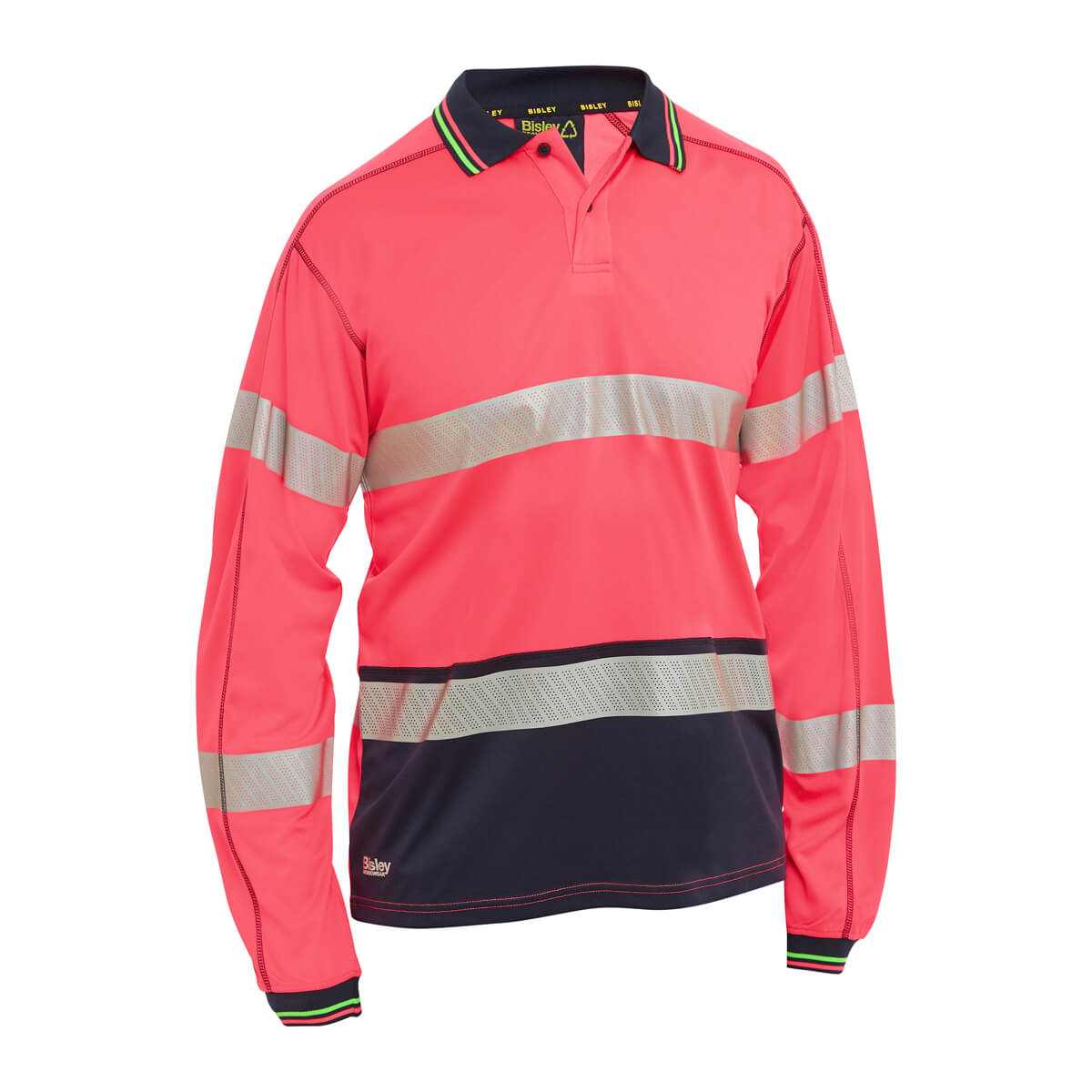 Bisley BK6219T Taped Two Tone Hi-Vis Polyester Mesh Polo Long Sleeve Yellow/Navy