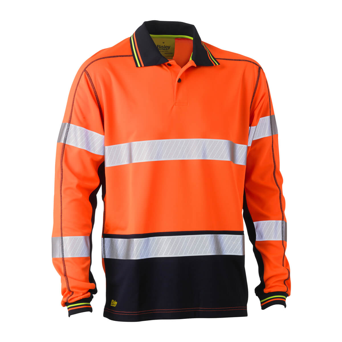 Bisley BK6219T Taped Two Tone Hi-Vis Polyester Mesh Polo Long Sleeve Pink/Navy