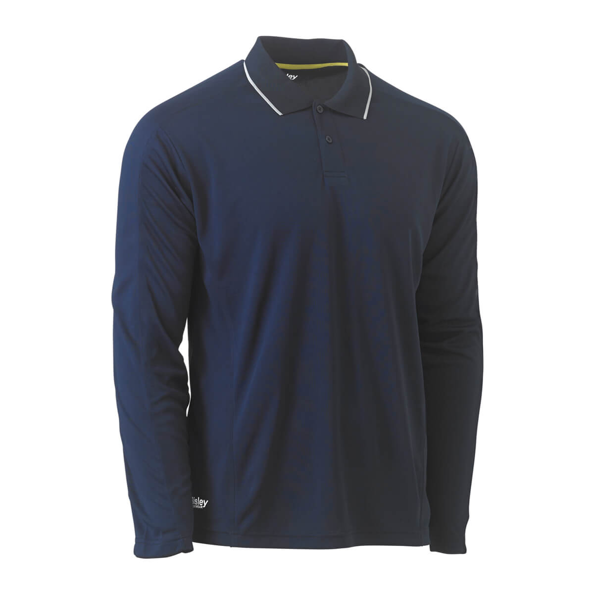 Bisley BK6425 Reflective Piping Cool Mesh Polo Shirt Long Sleeve Charcoal
