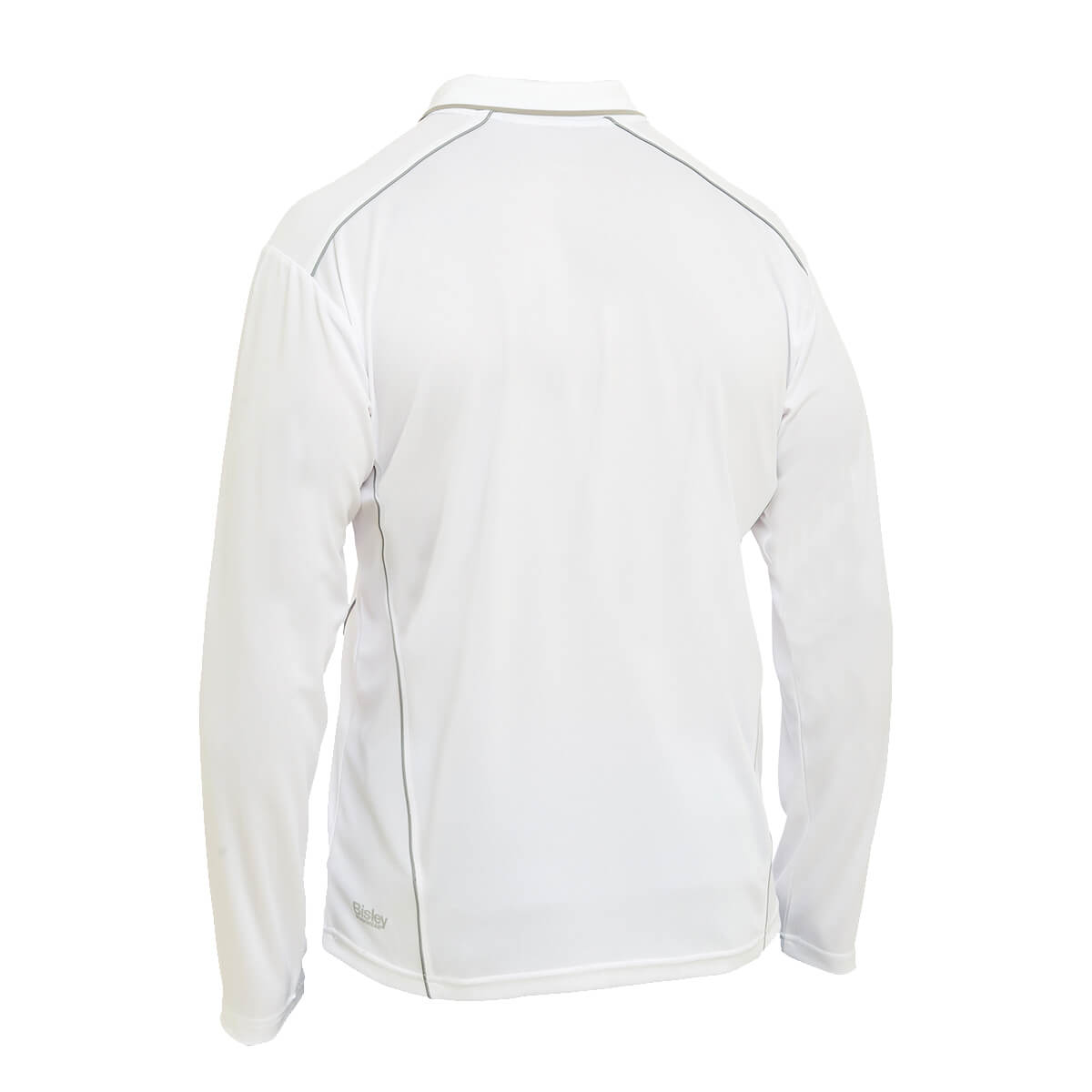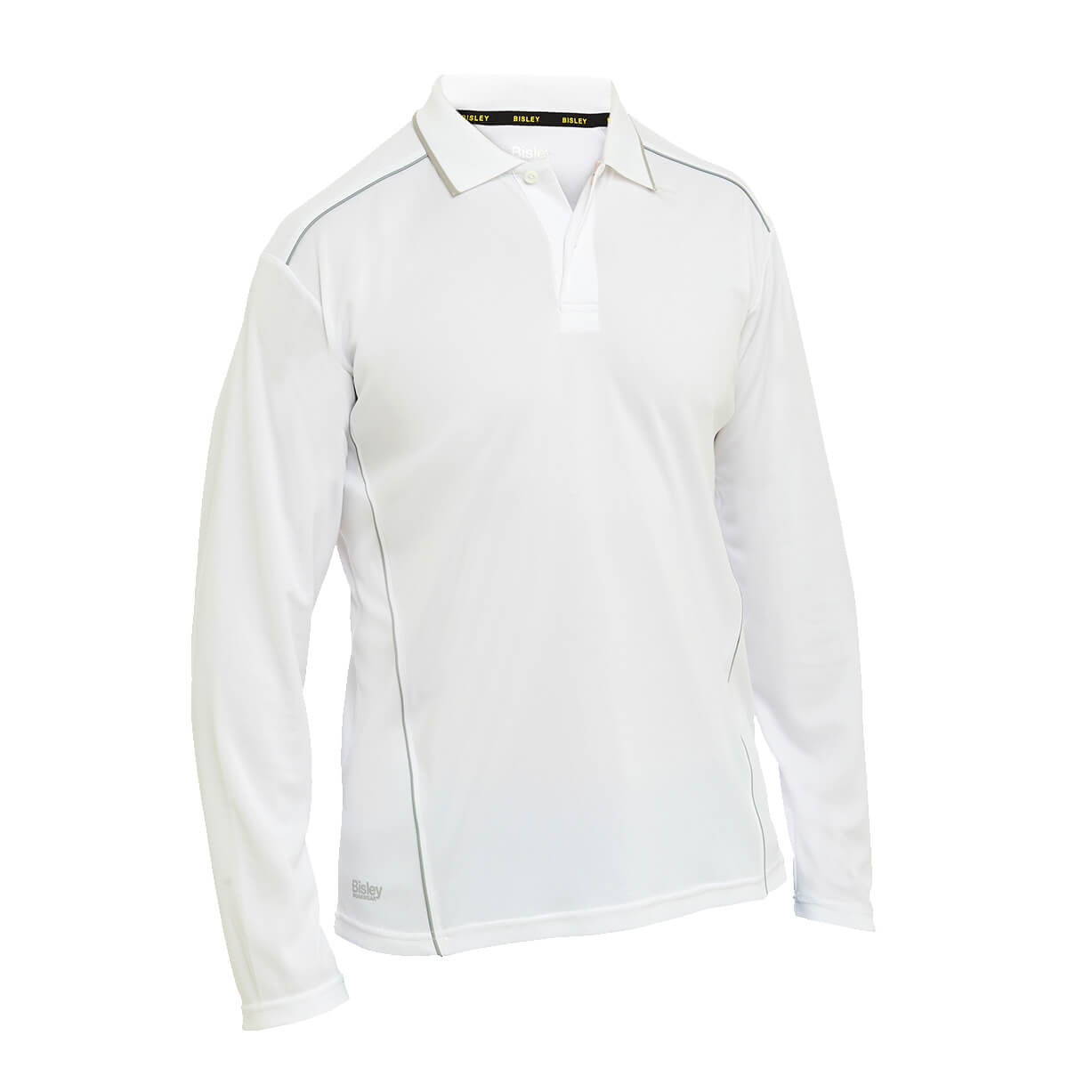 Bisley BK6425 Reflective Piping Cool Mesh Polo Shirt Long Sleeve White