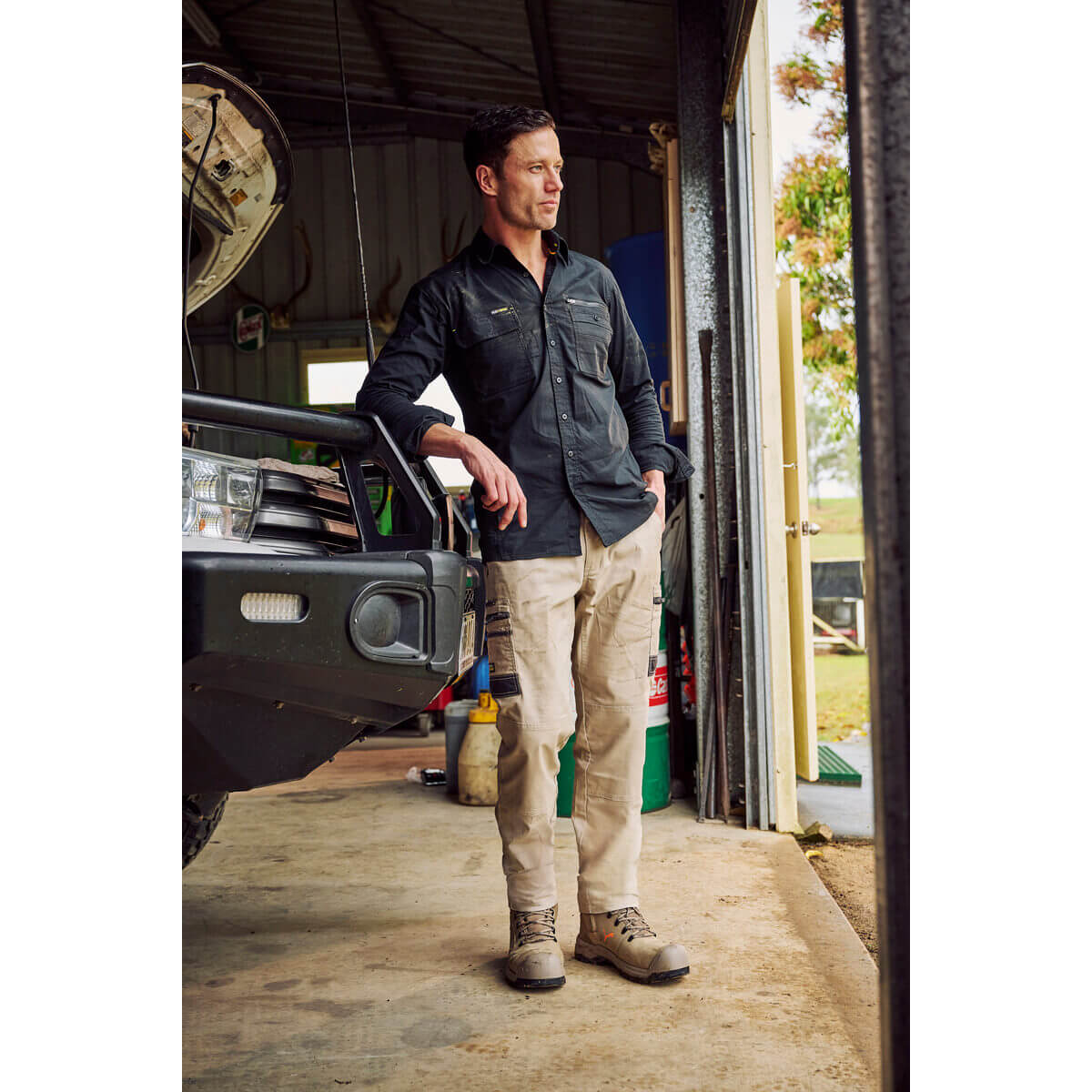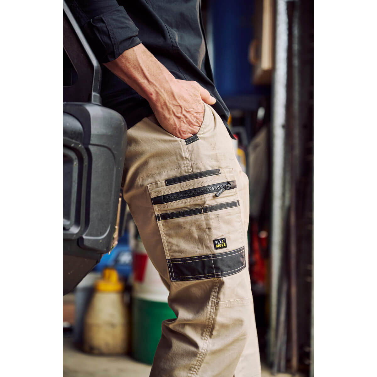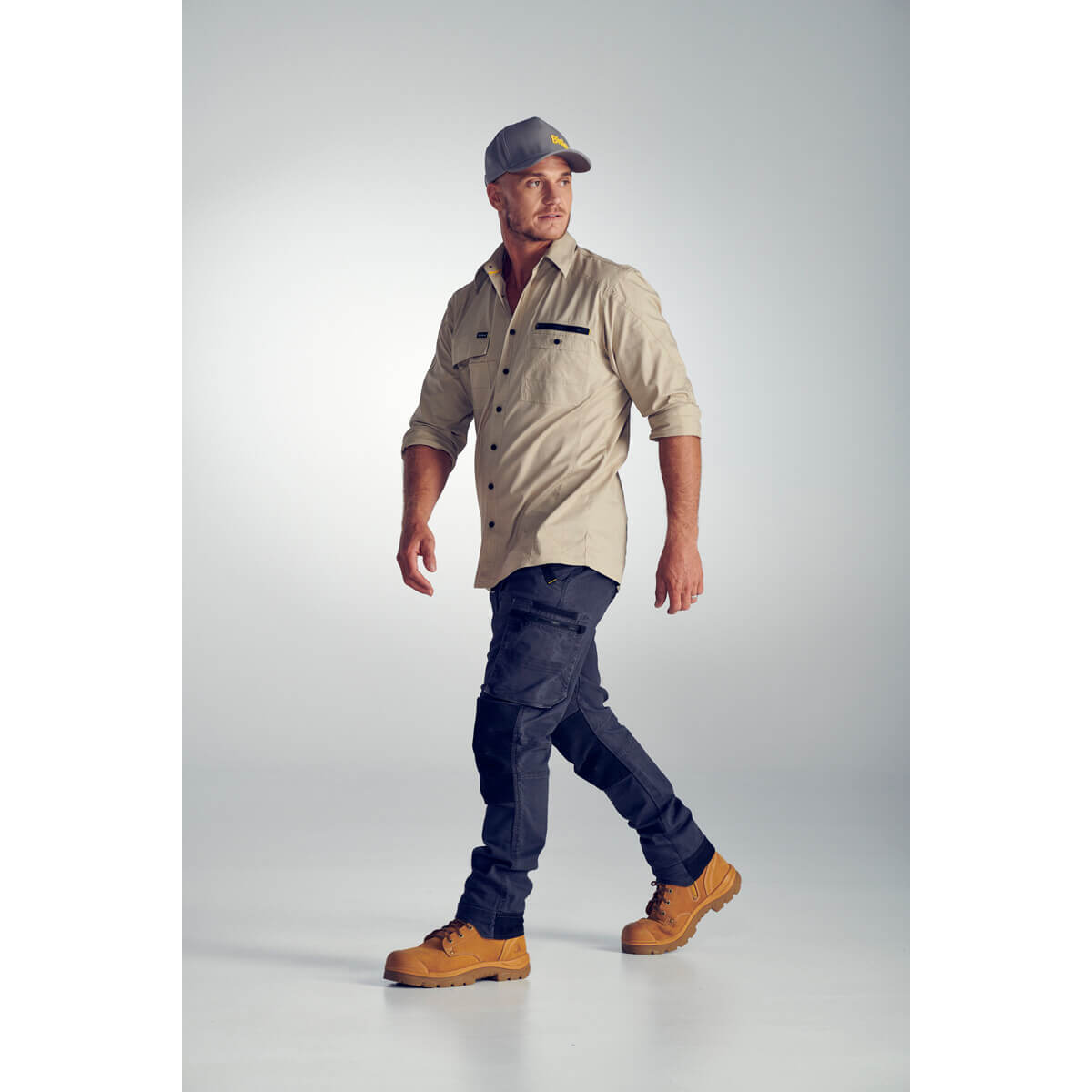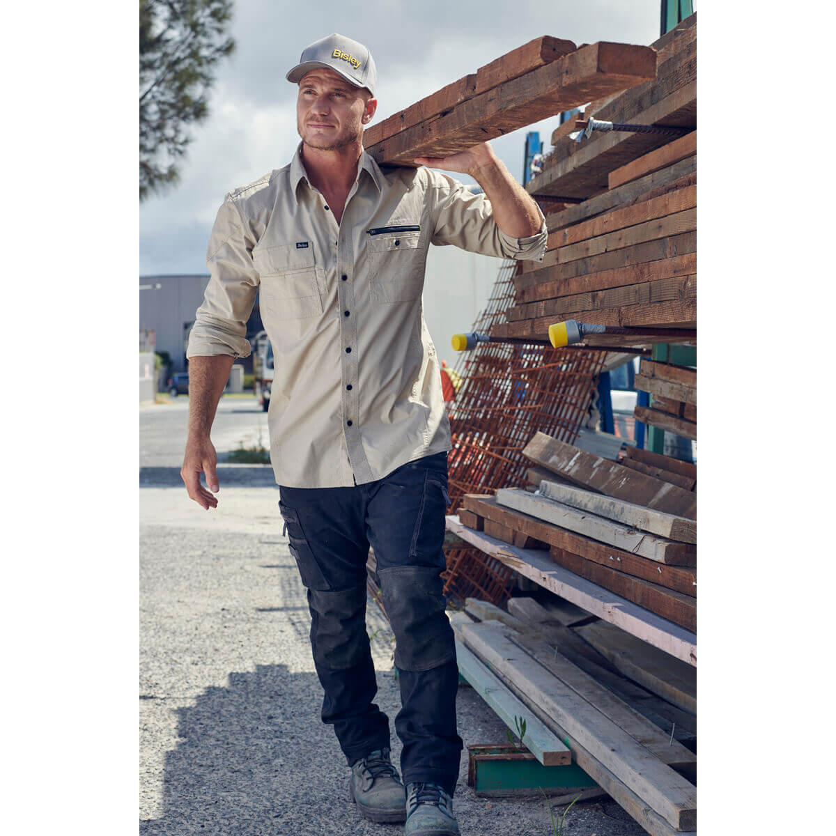 Bisley BS6144 Flex & Move Utility Work Shirt Long Sleeve Stone