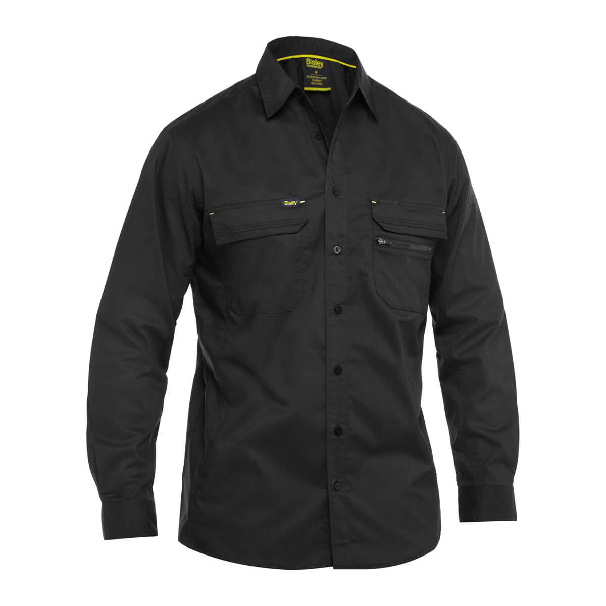 - Bisley X Airflow laser perforated self fabric panels on side of body and underarms for extra ventilation