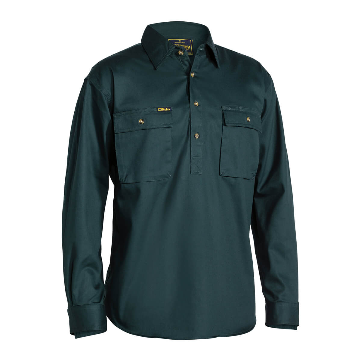 Bisley BSC6433 Closed Front Cotton Drill Shirt Long Sleeve Bottle
