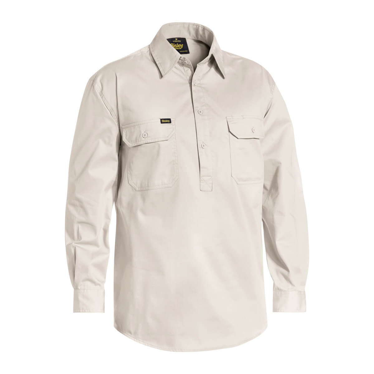 Bisley BSC6820 Lightweight Closed Front Cotton Drill Shirt Long Sleeve Khaki