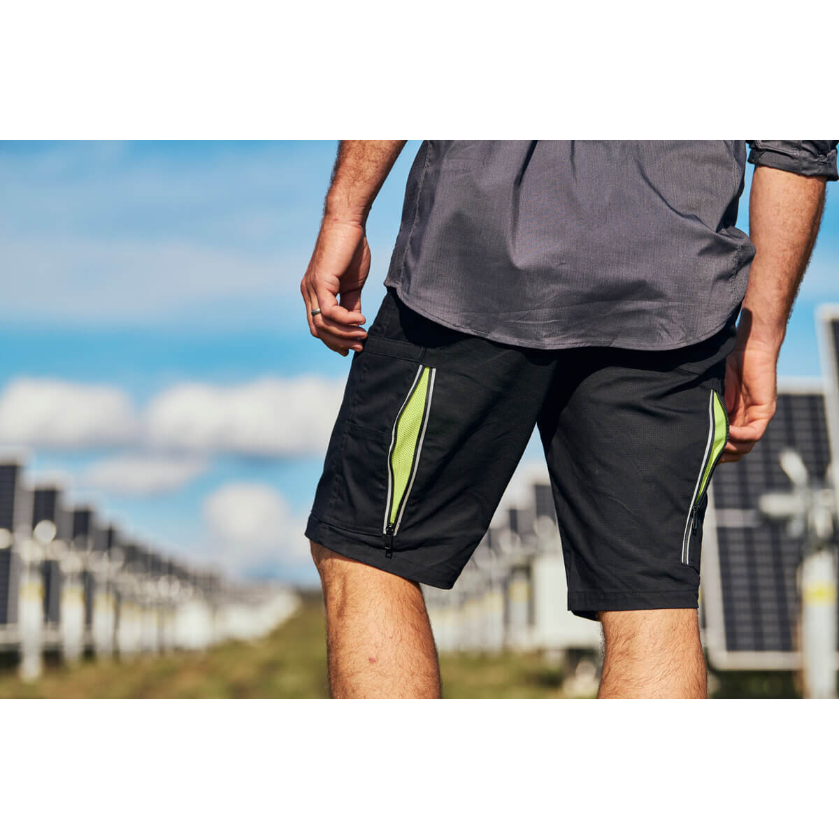 - Yellow contrast mesh ventilation with zip closure at both sides