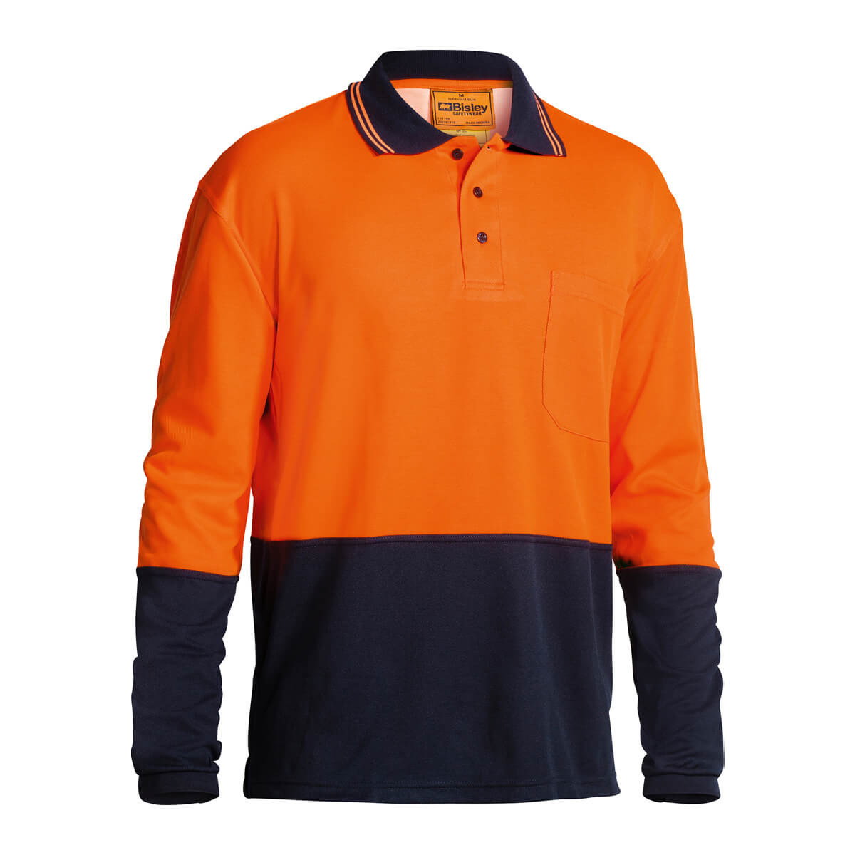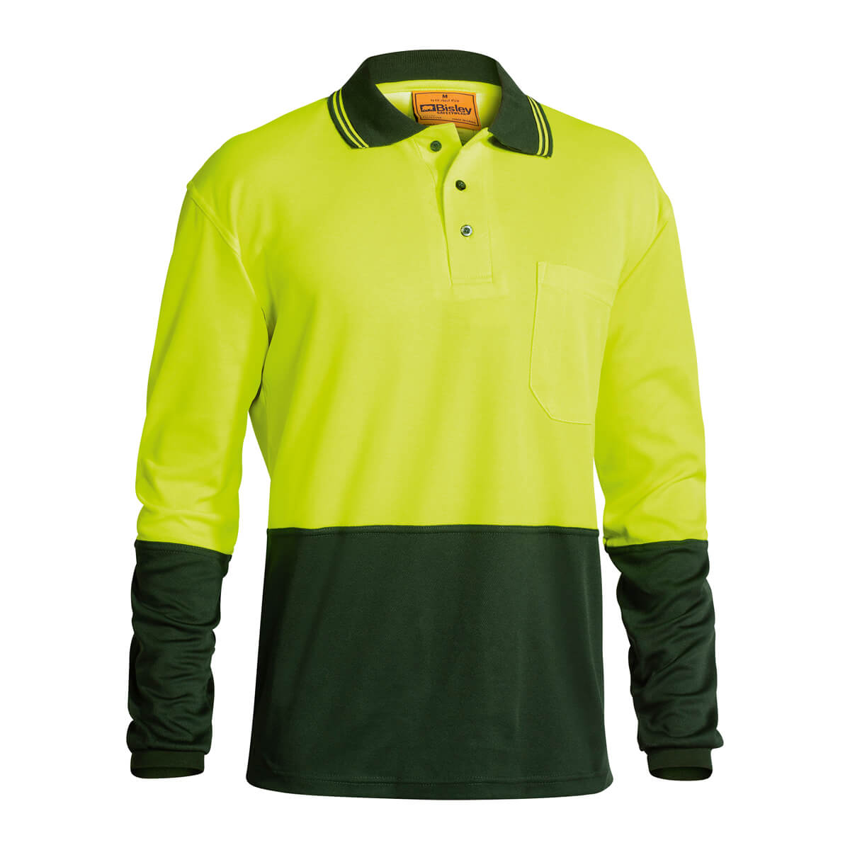 Bisley BK6234 Hi-Vis Cotton Backed Polo Long Sleeve Yellow/Bottle