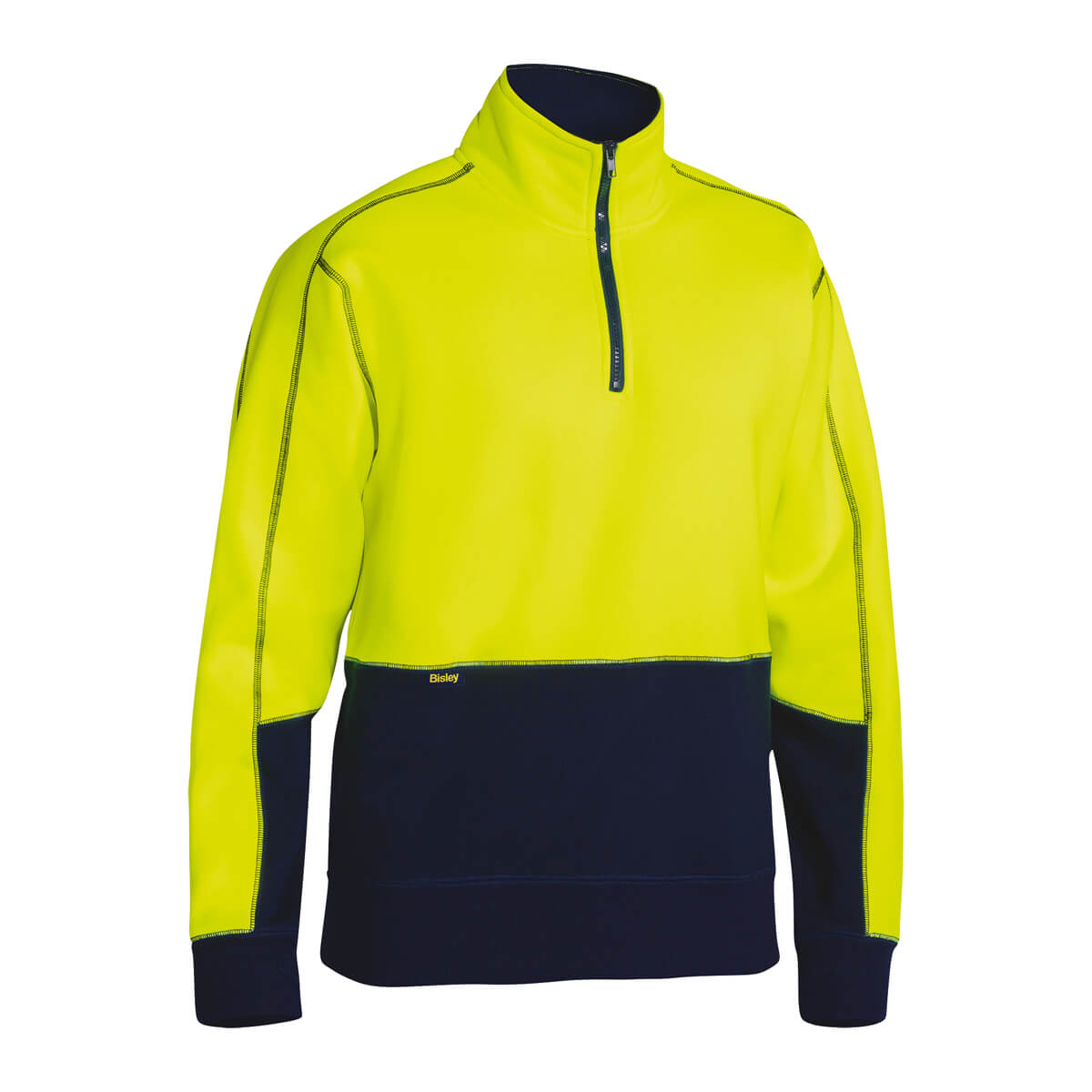 Bisley BK6989 Hi-Vis Quarter-Zip Polar Fleece Pullover Jumper Orange/Navy