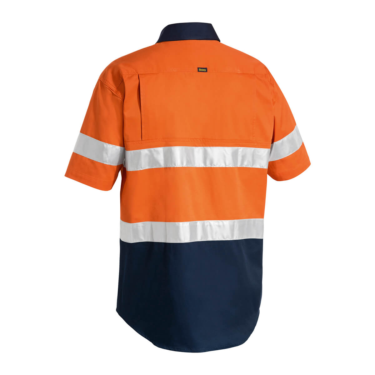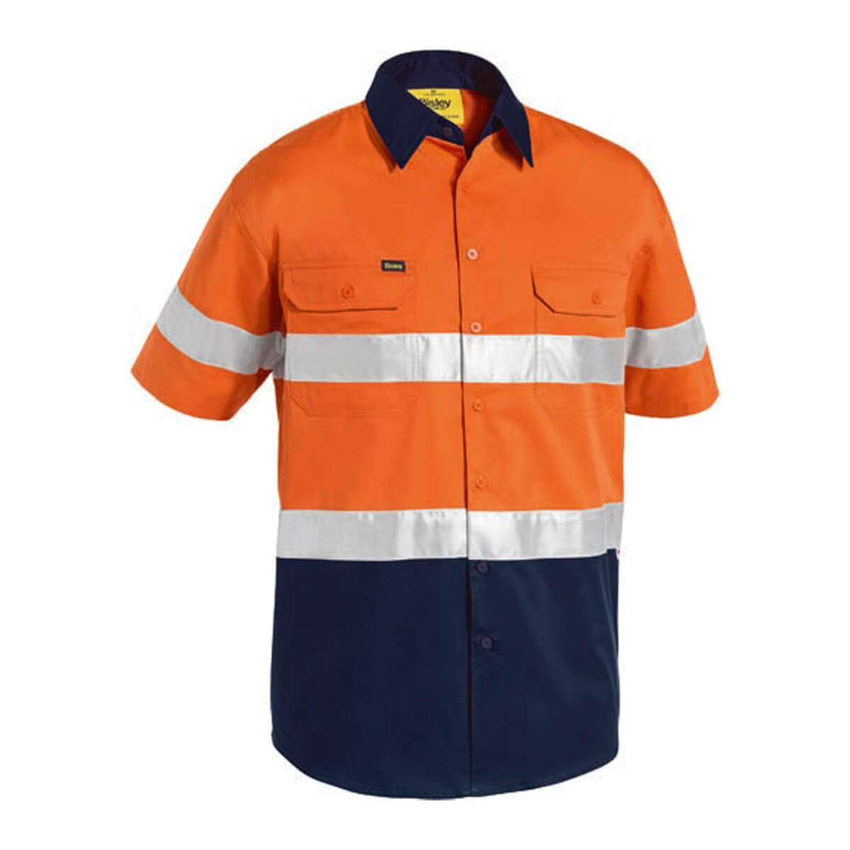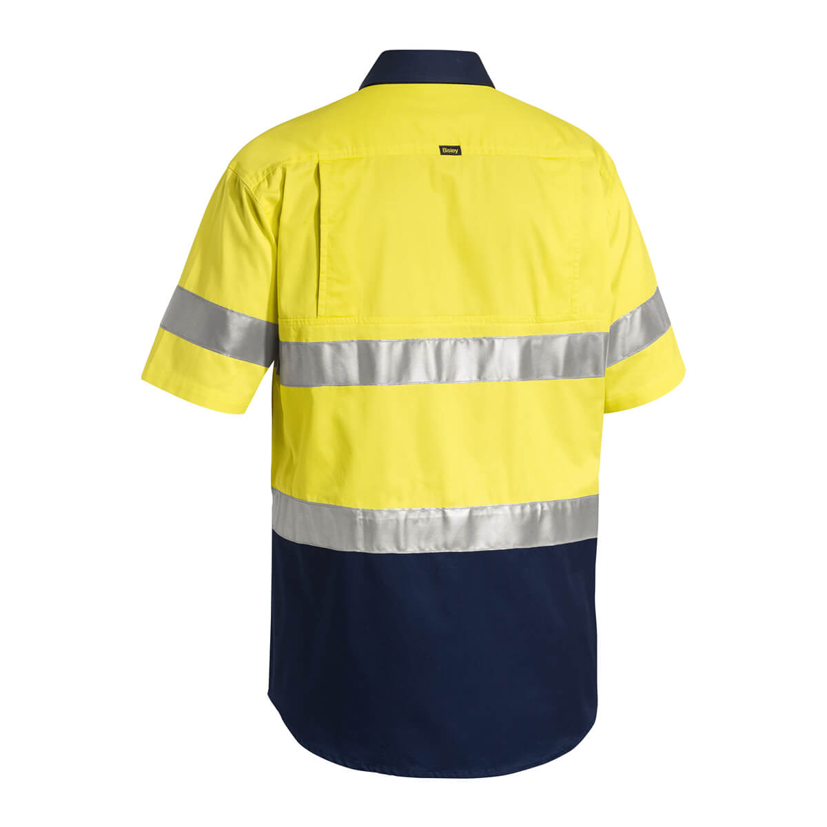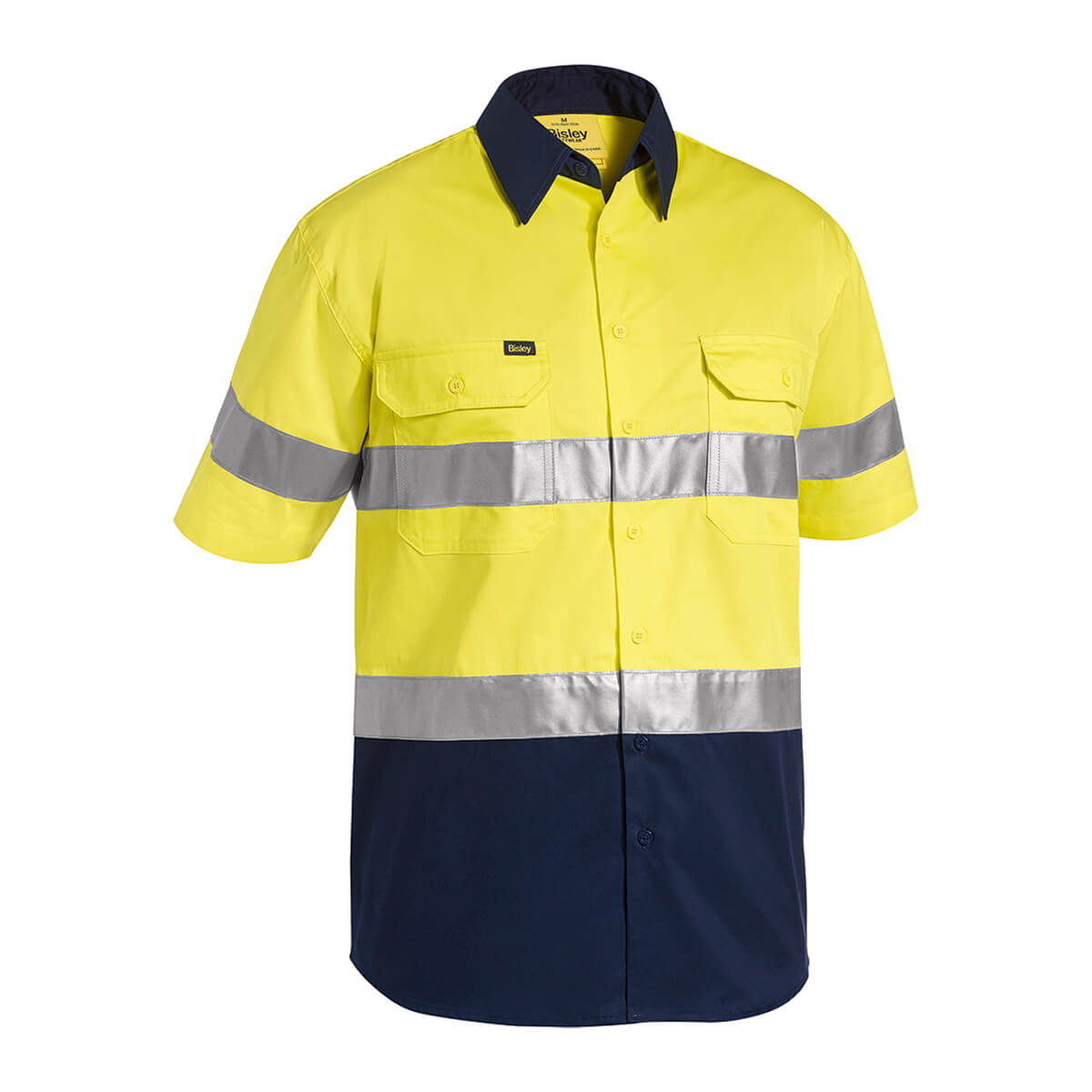 Bisley BS1896 Hi-Vis Taped Lightweight Cotton Drill Shirt Short Sleeve Yellow/Navy