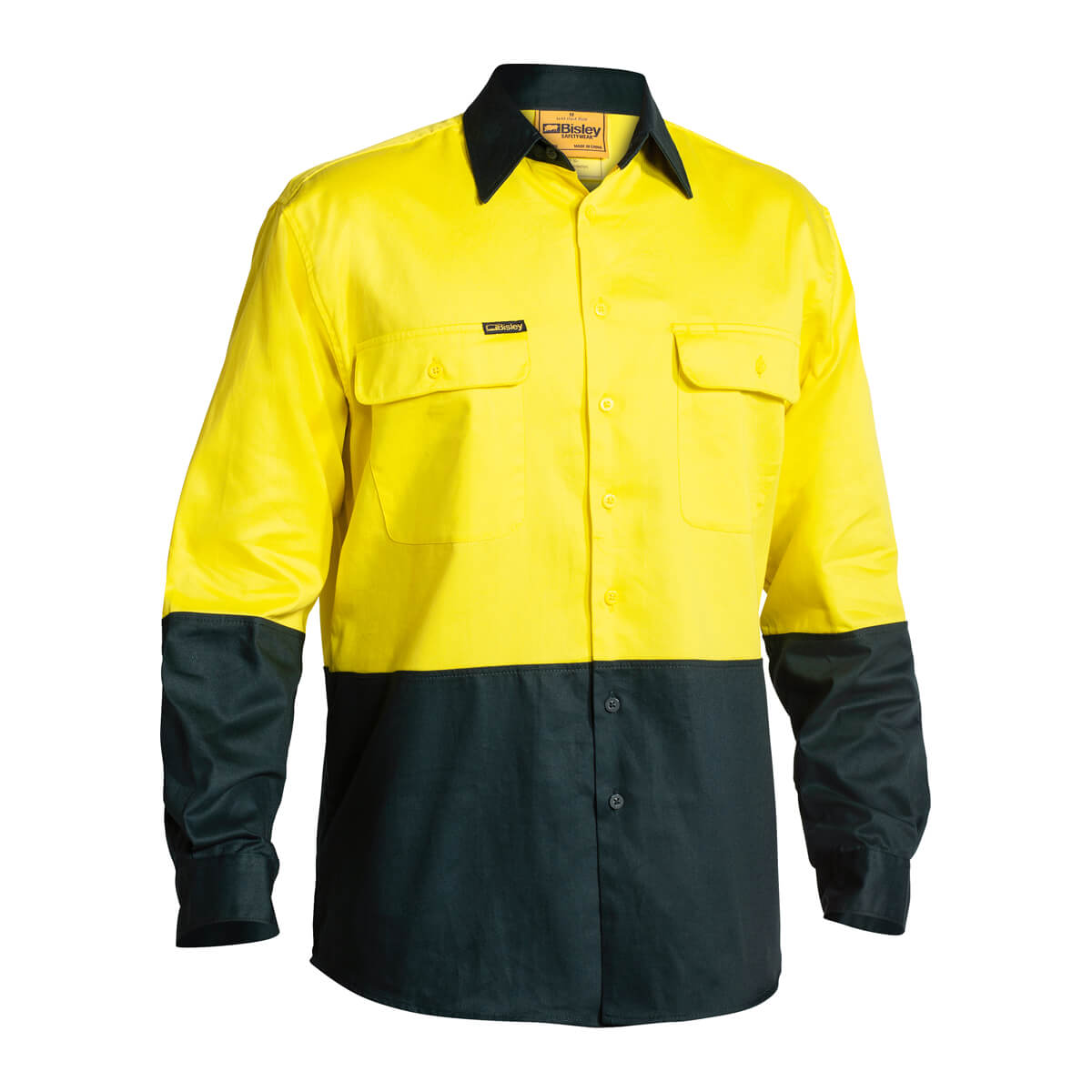Bisley BS6267 Hi-Vis Cotton Drill Shirt Long Sleeve Yellow/Bottle