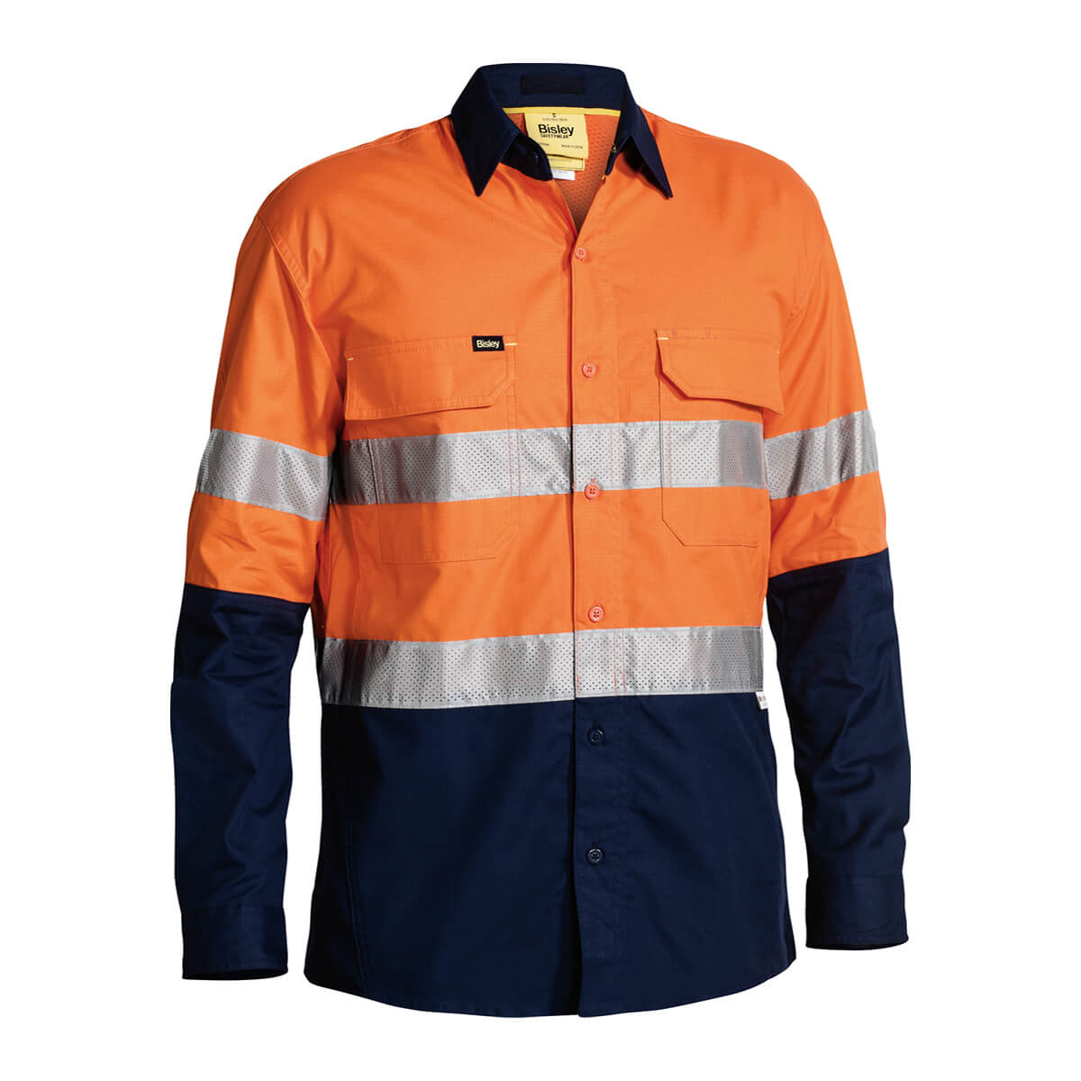 Bisley BS6415T Hi-Vis Taped Vented Shirt Long Sleeve Lime/Charcoal
