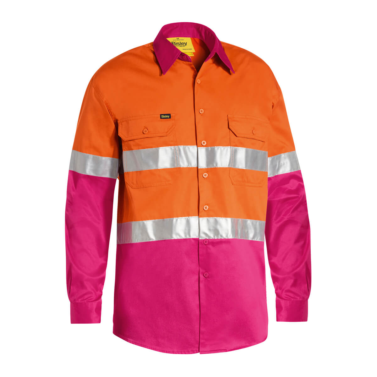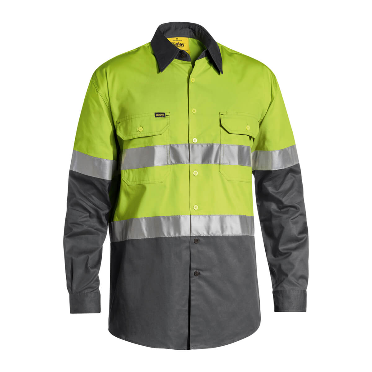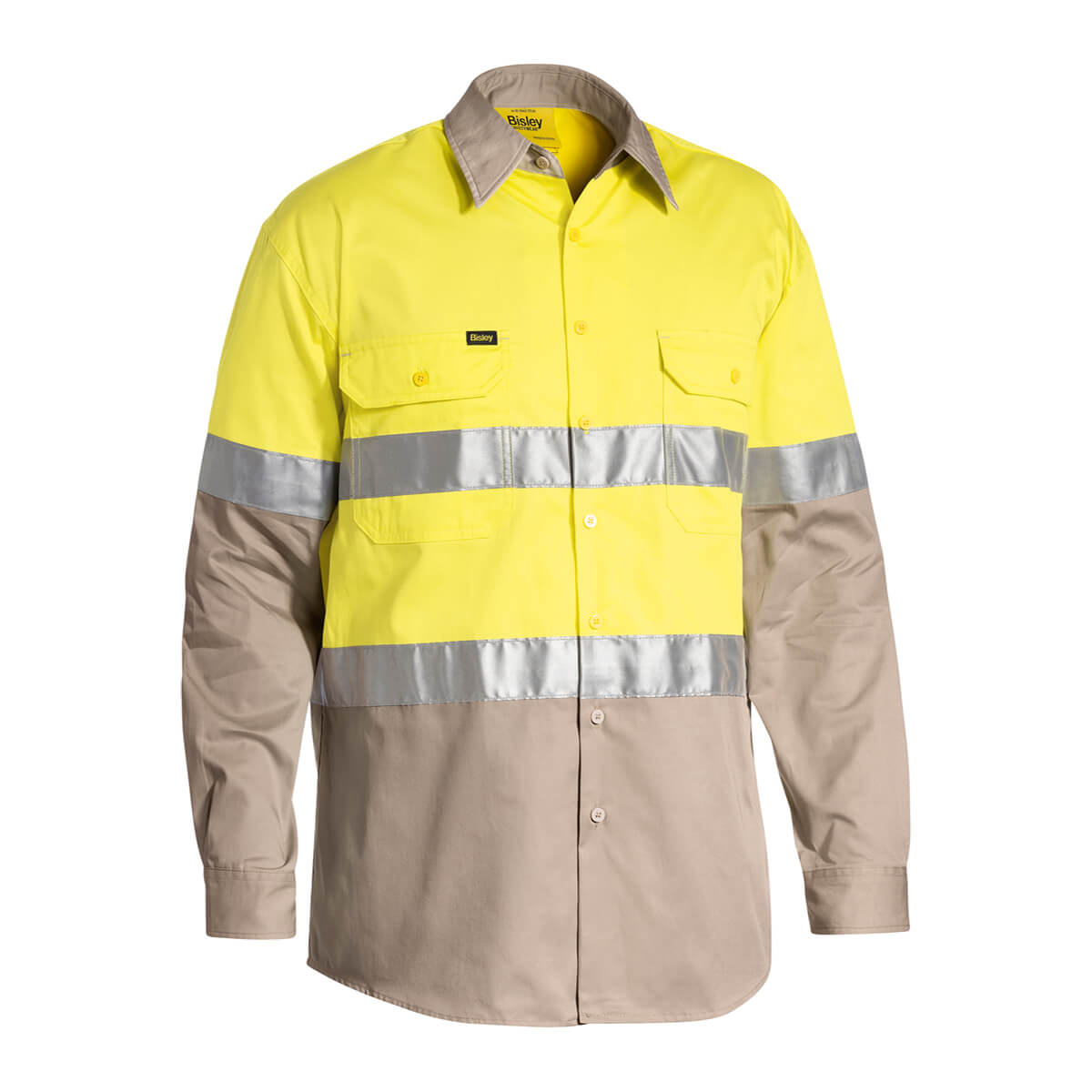 Bisley BS6696T Hi-Vis Taped Lightweight Cotton Drill Shirt Long Sleeve Yellow/Navy
