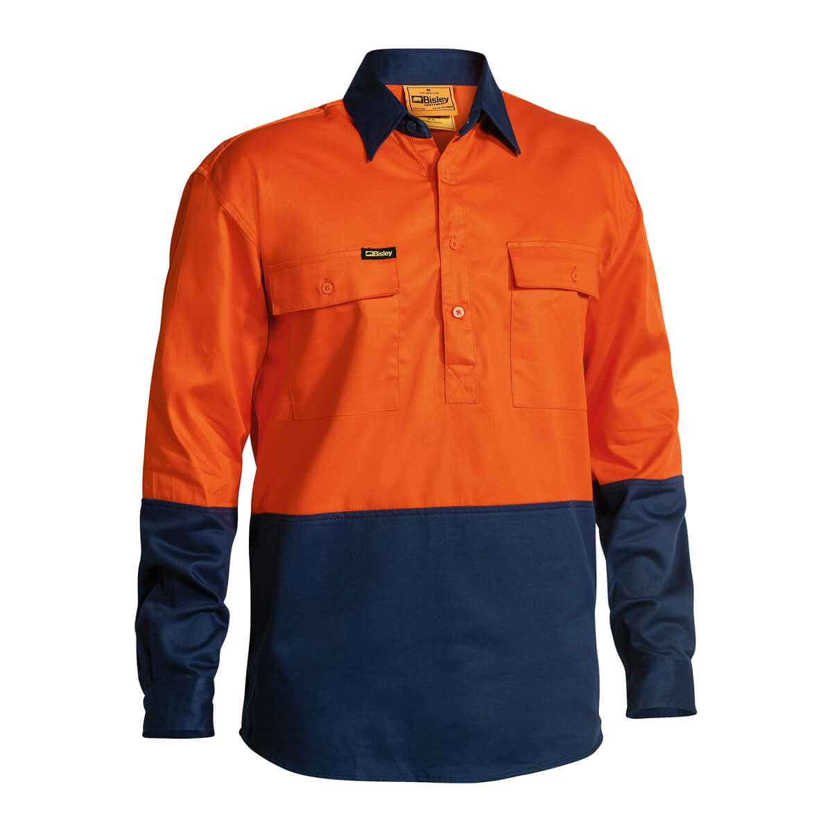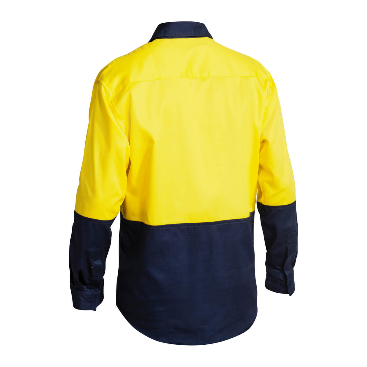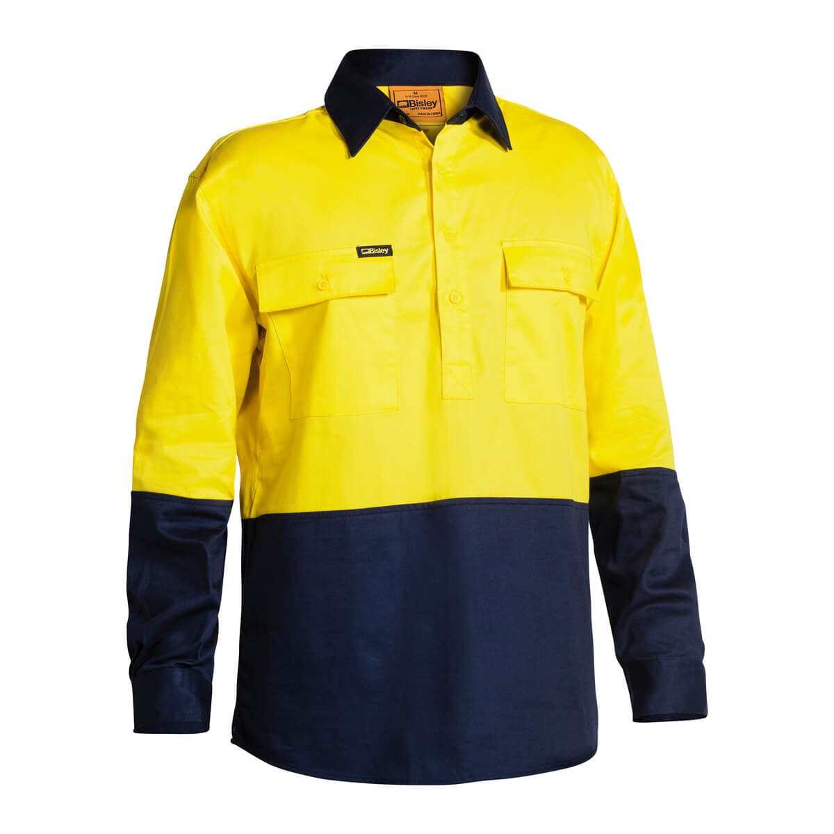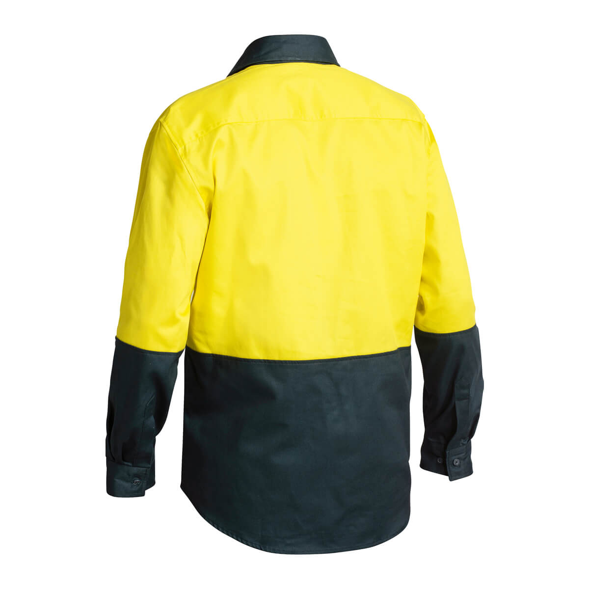 Bisley BSC6267 Hi-Vis Closed Front Cotton Drill Shirt Long Sleeve Yellow/Bottle