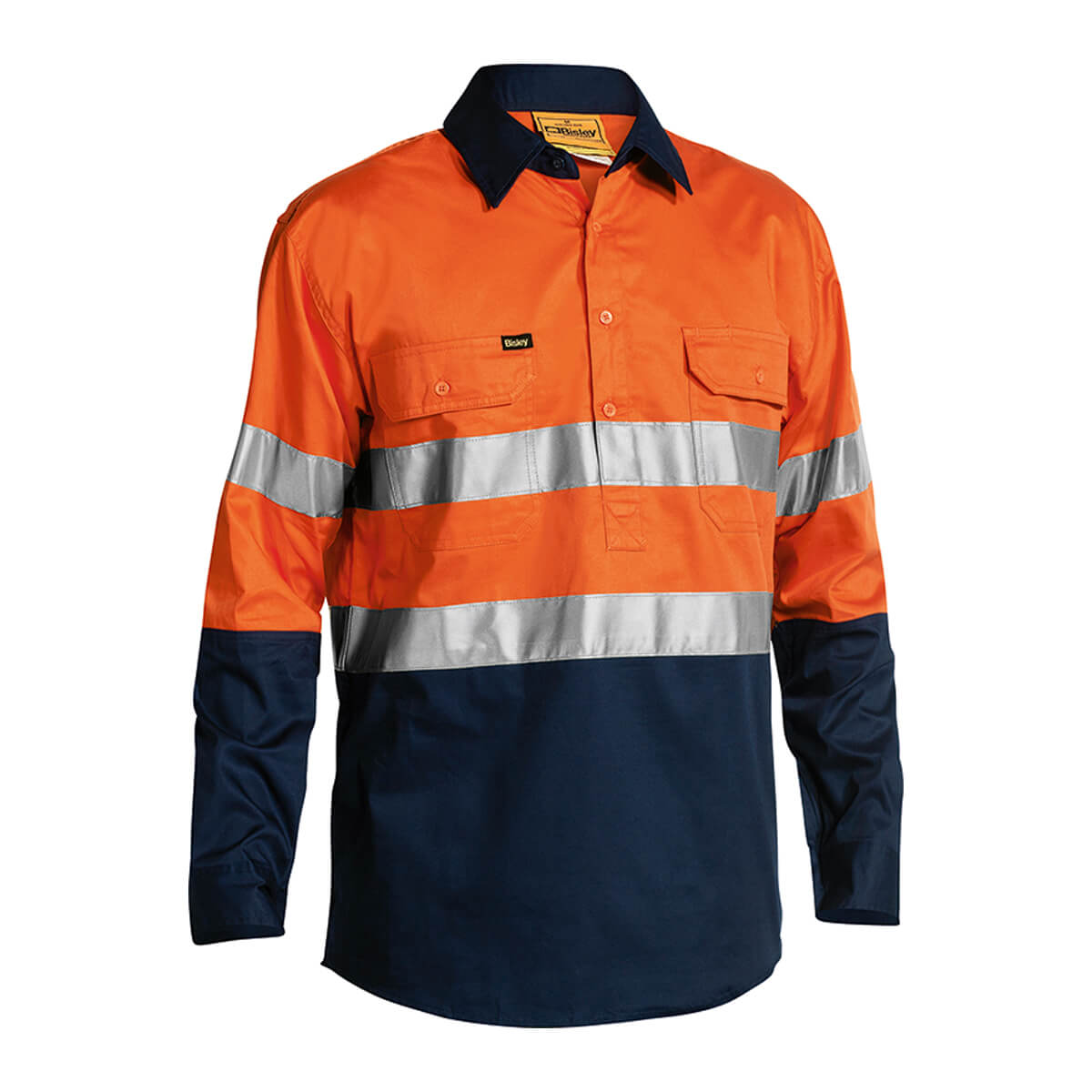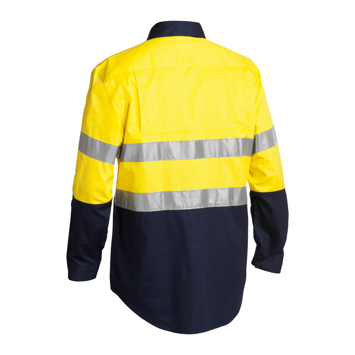 Bisley BSC6896 Hi-Vis Taped Closed Front Lightweight Cotton Drill Shirt Long Sleeve Yellow/Navy