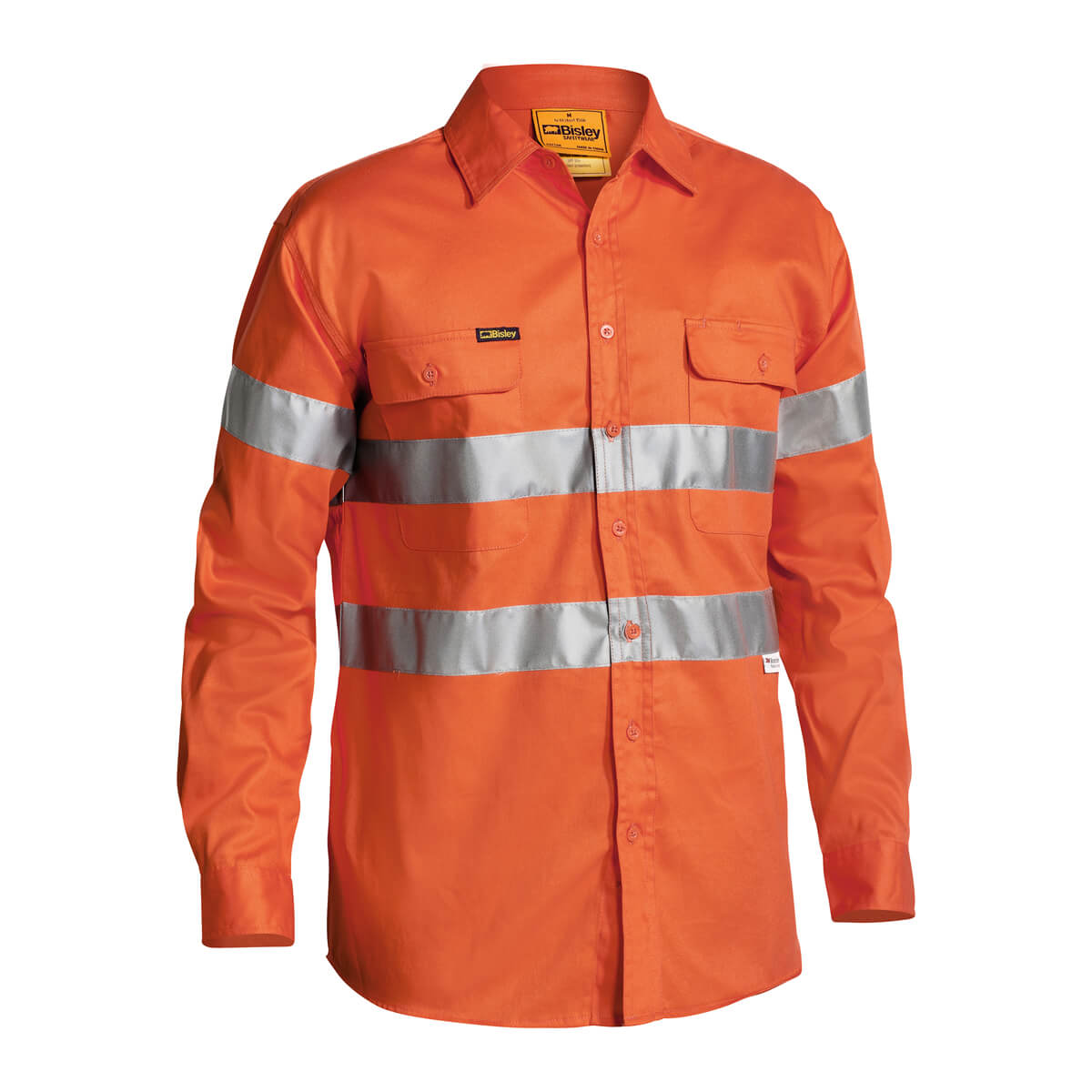 Bisley BT6482 Hi-Vis Taped Cotton Drill Shirt Long Sleeve Orange