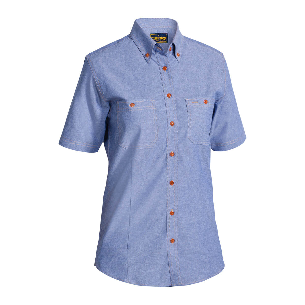 Bisley B71407L Ladies Cotton Shirt Short Sleeve Blue