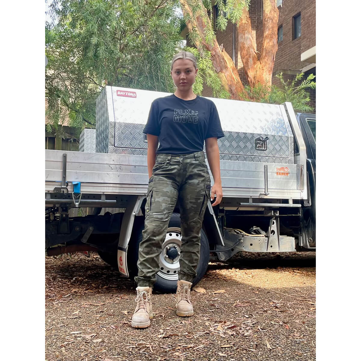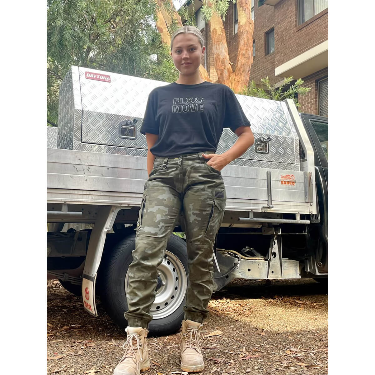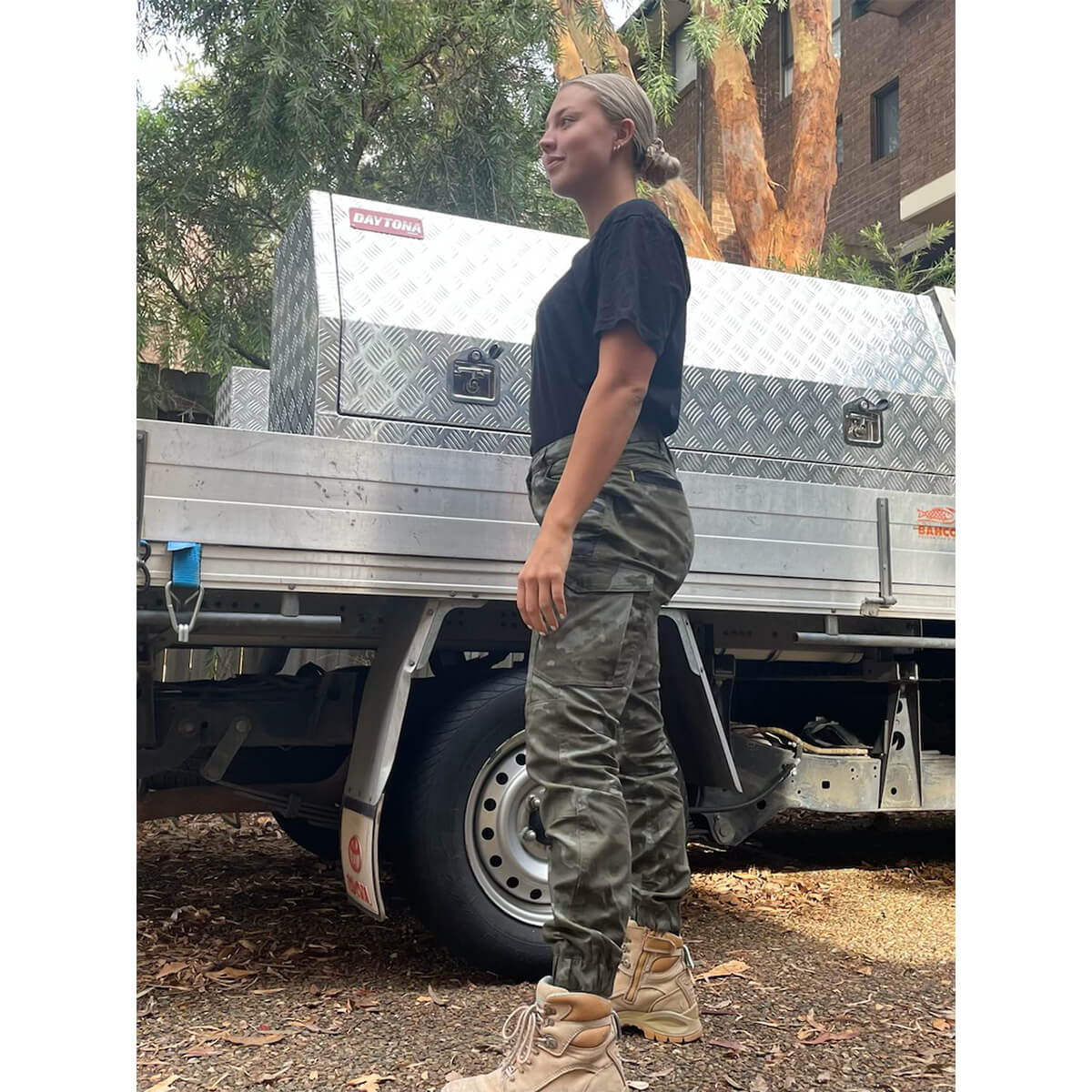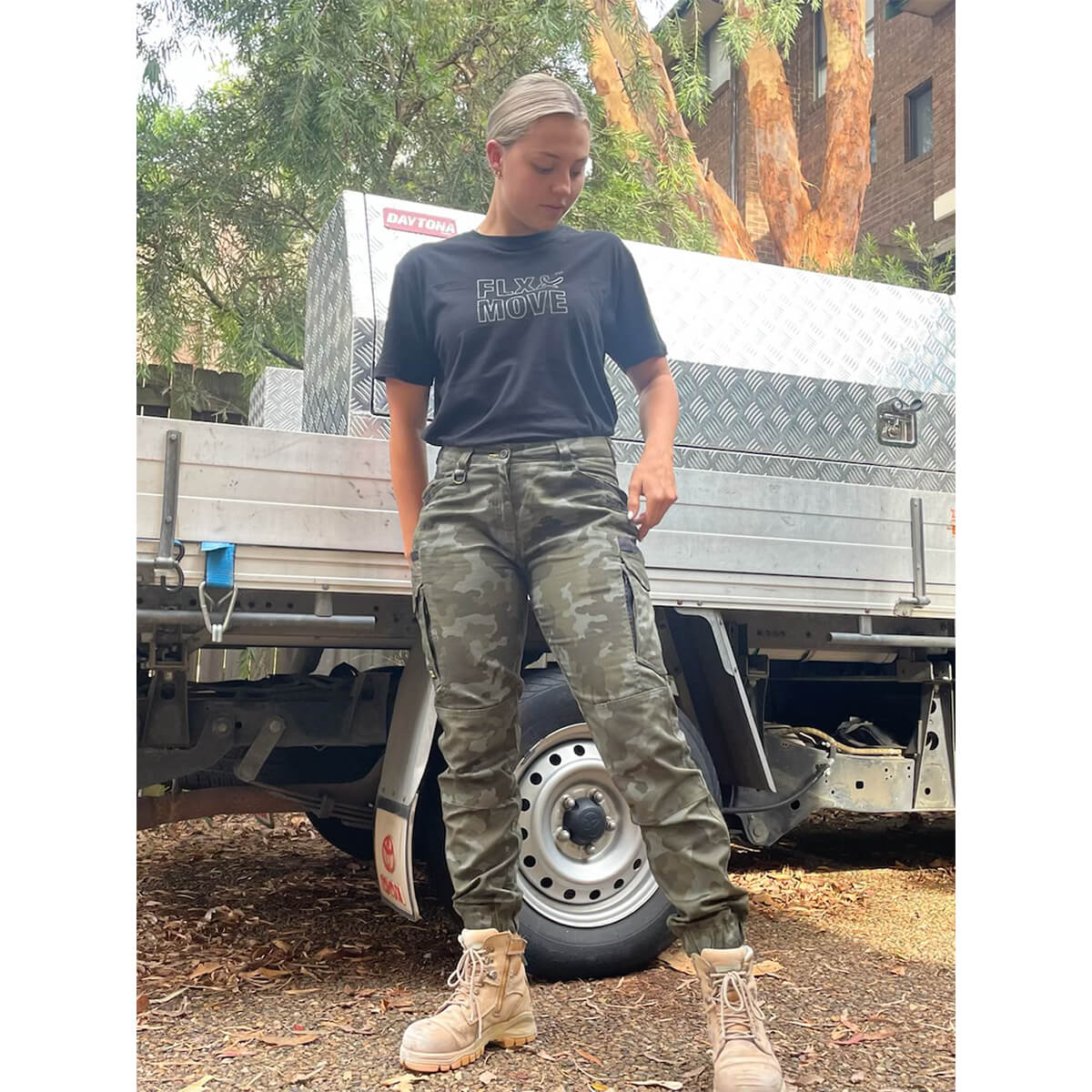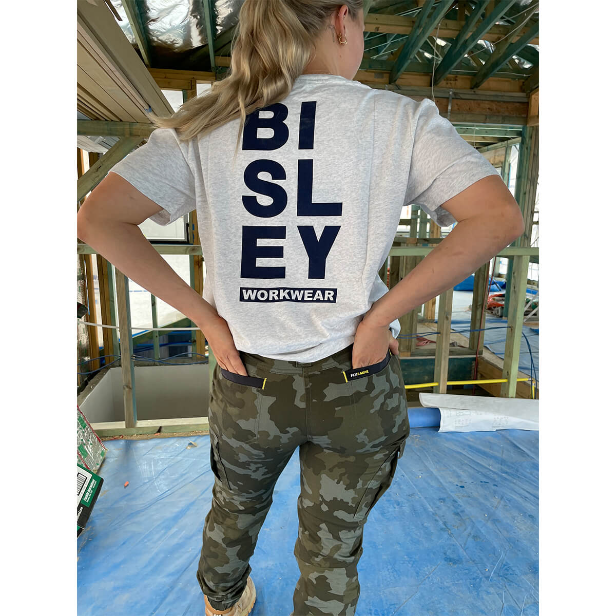 Bisley BPCL6337 Womens FLX & Move Stretch Camo Cargo Pants Charcoal Honeycomb