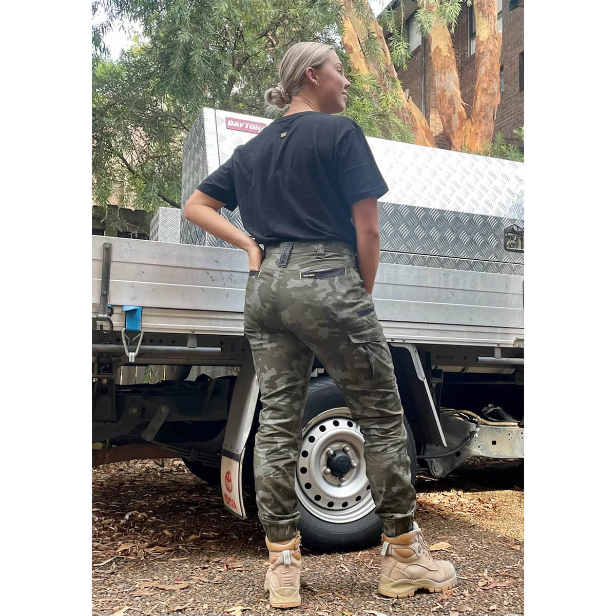 Bisley BPCL6337 Womens FLX & Move Stretch Camo Cargo Pants Grey Paint Splatter