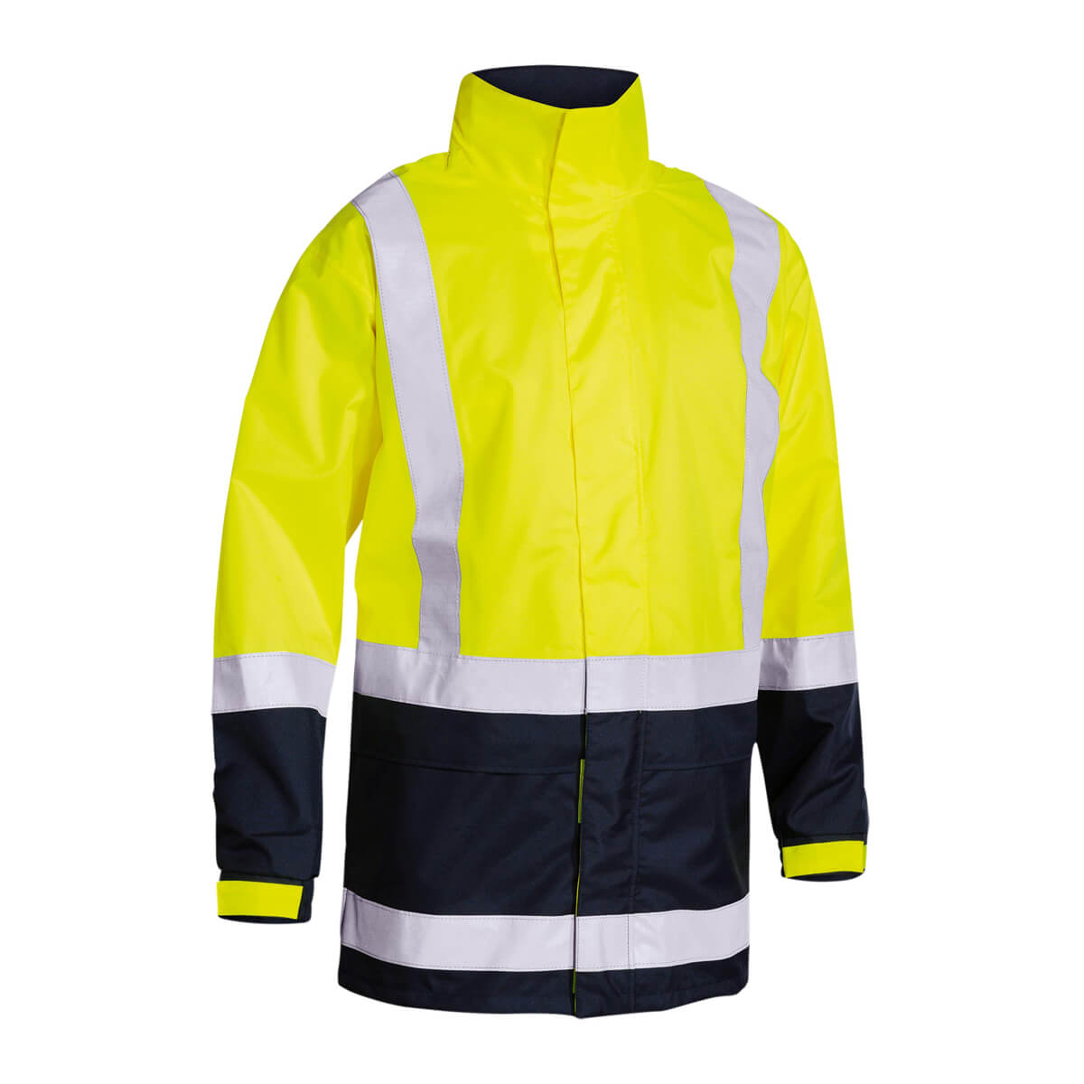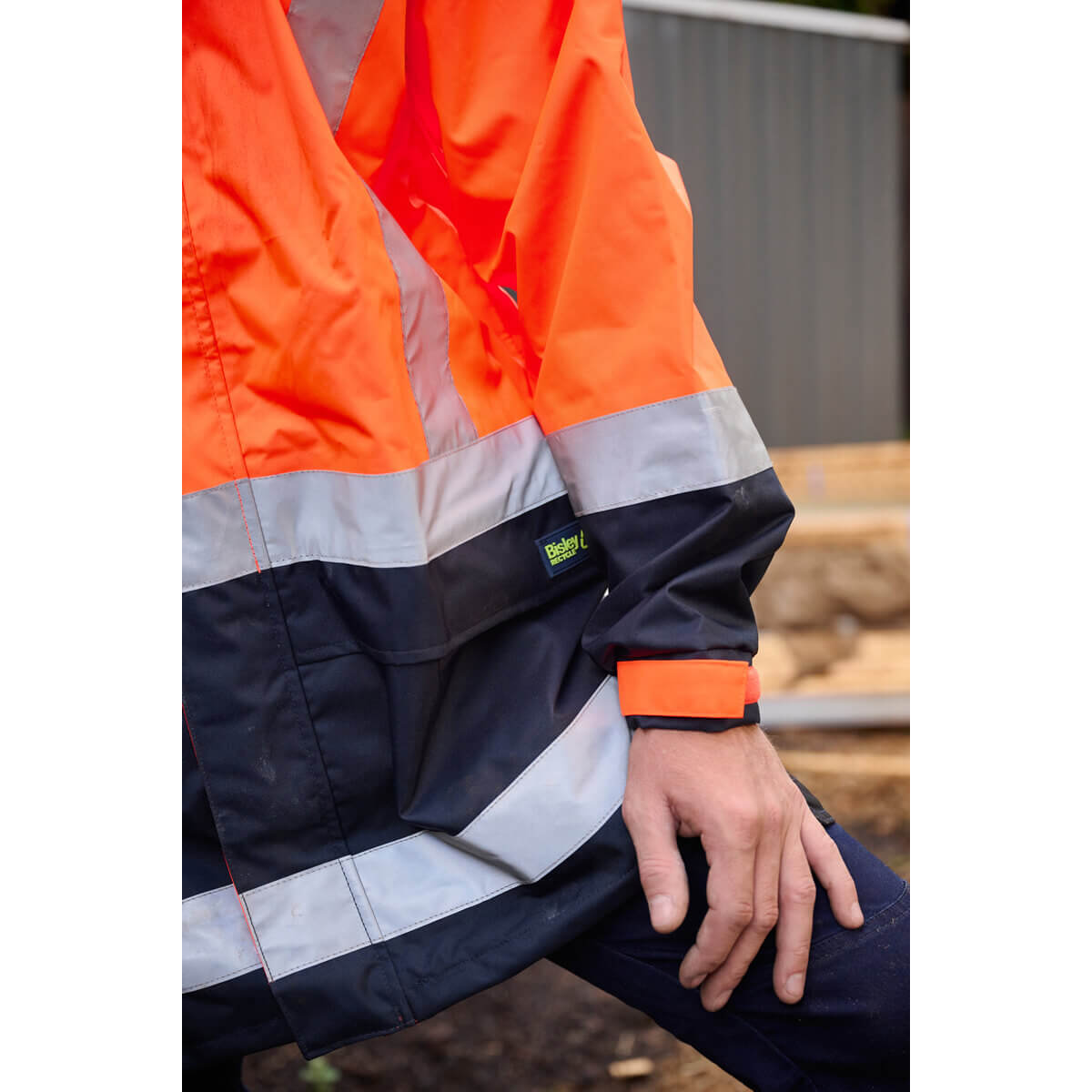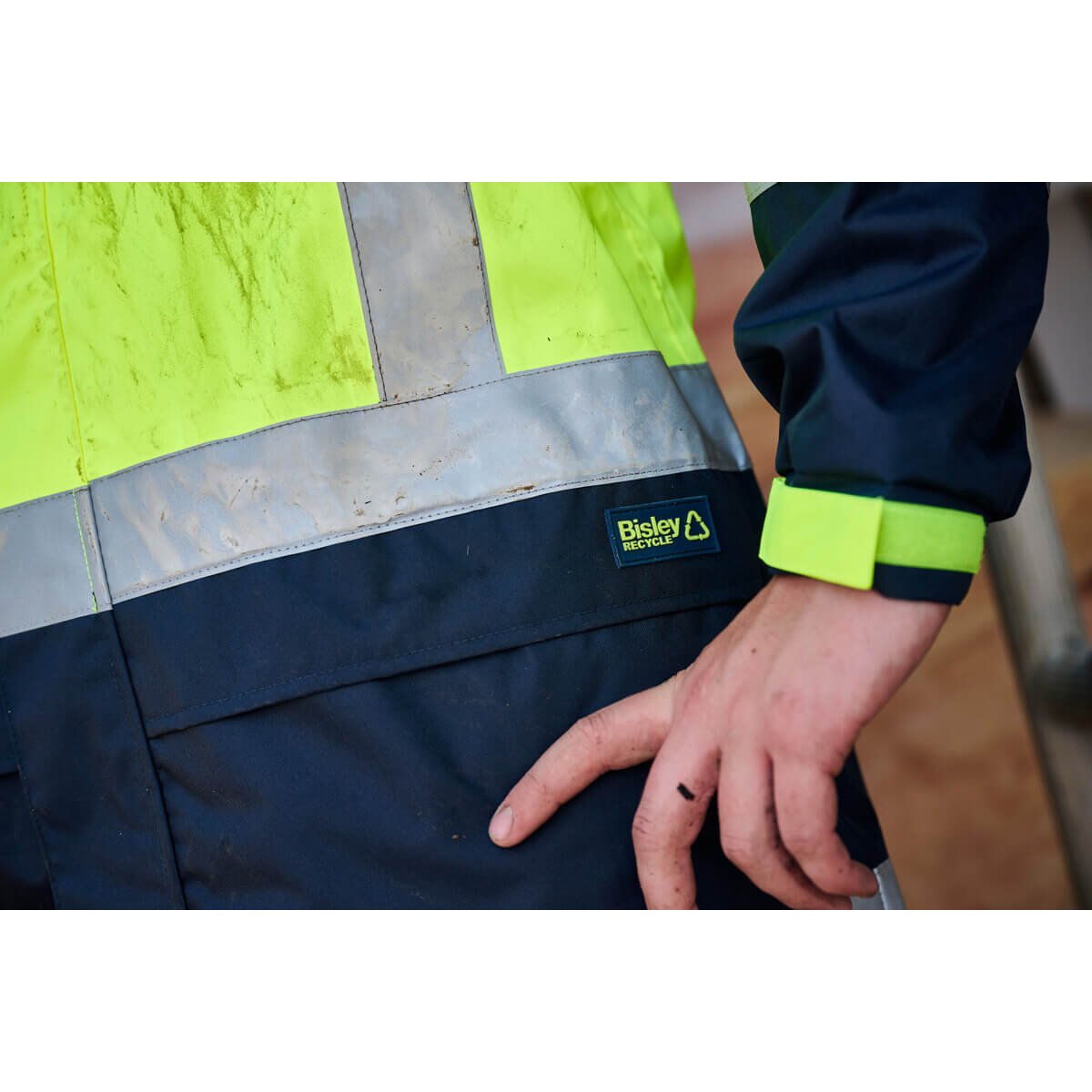 Bisley BJ6766T Taped Hi Vis Recycled Rain Shell Jacket Yellow/Navy