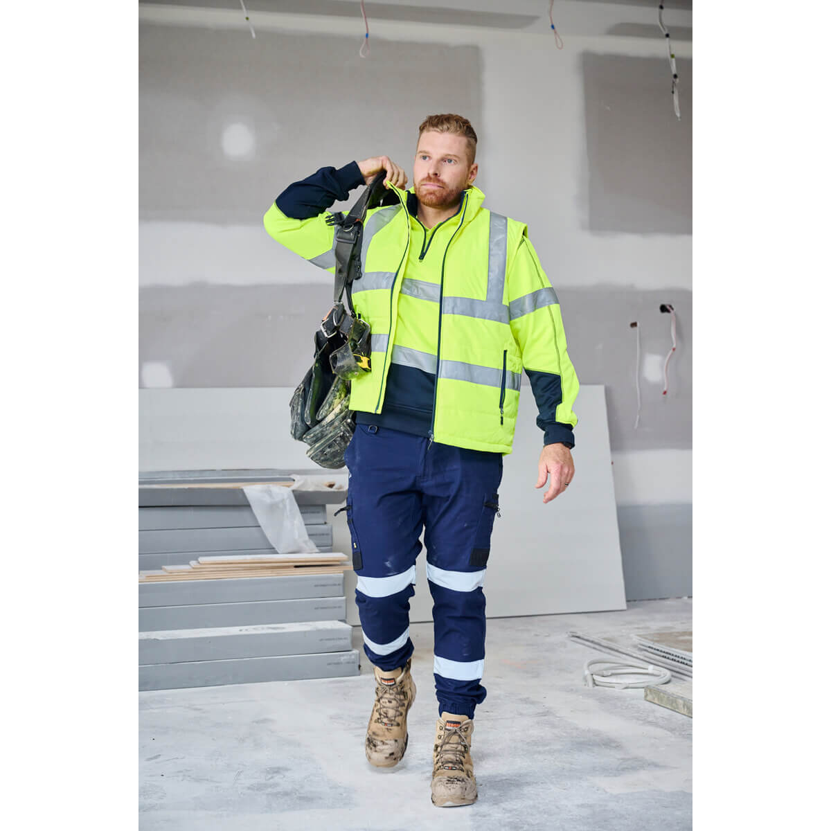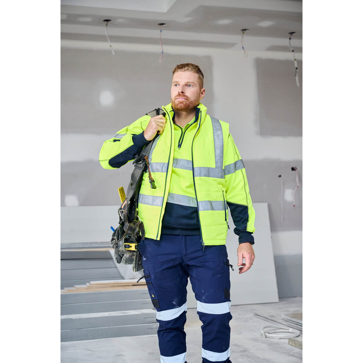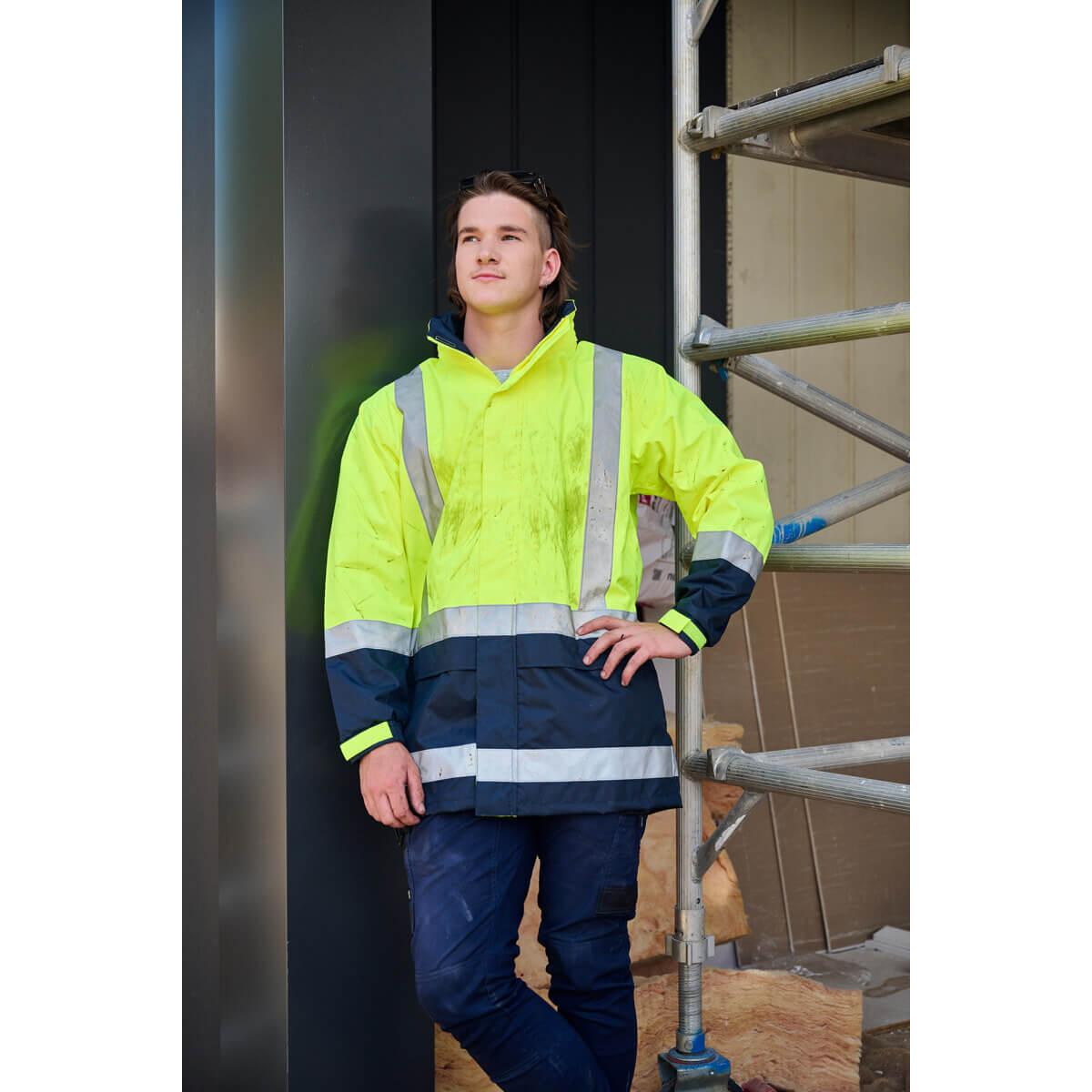 Bisley BJ6766T Taped Hi Vis Recycled Rain Shell Jacket Yellow/Navy