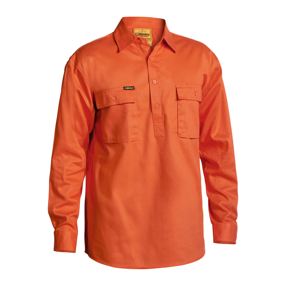 Bisley BSC6433 Closed Front Cotton Drill Shirt Long Sleeve Navy