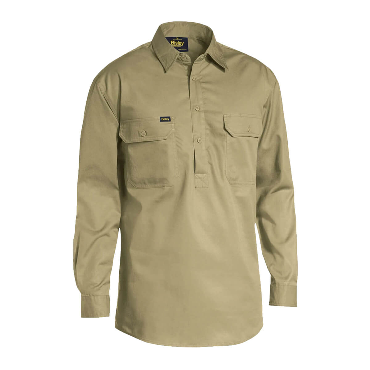 Bisley BSC6820 Lightweight Closed Front Cotton Drill Shirt Long Sleeve Sand