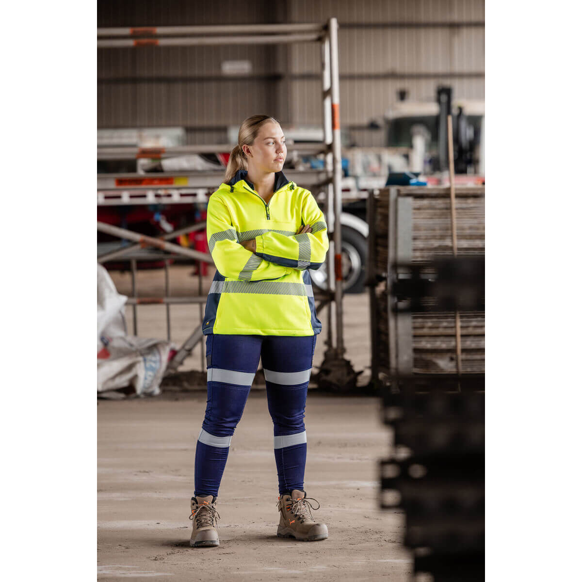 Bisley BKL6571T Women’s Hi Vis Taped Liquid Repellent Fleece Hoodie Yellow/Navy