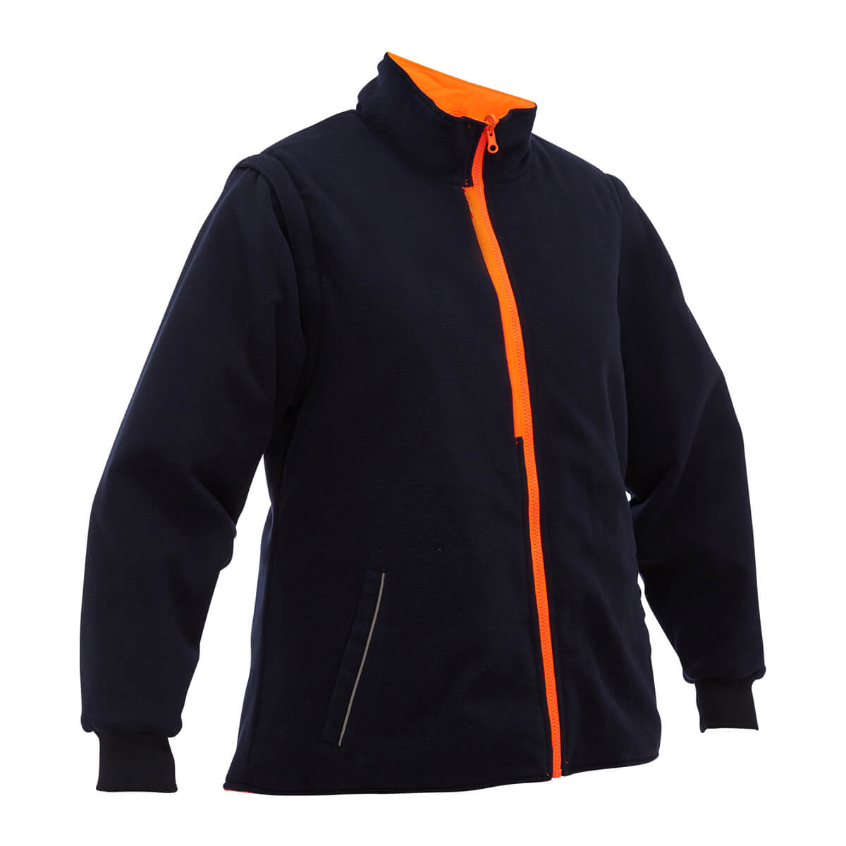 - Detachable, zip-out sleeves and heavy-duty two way zippered front opening
