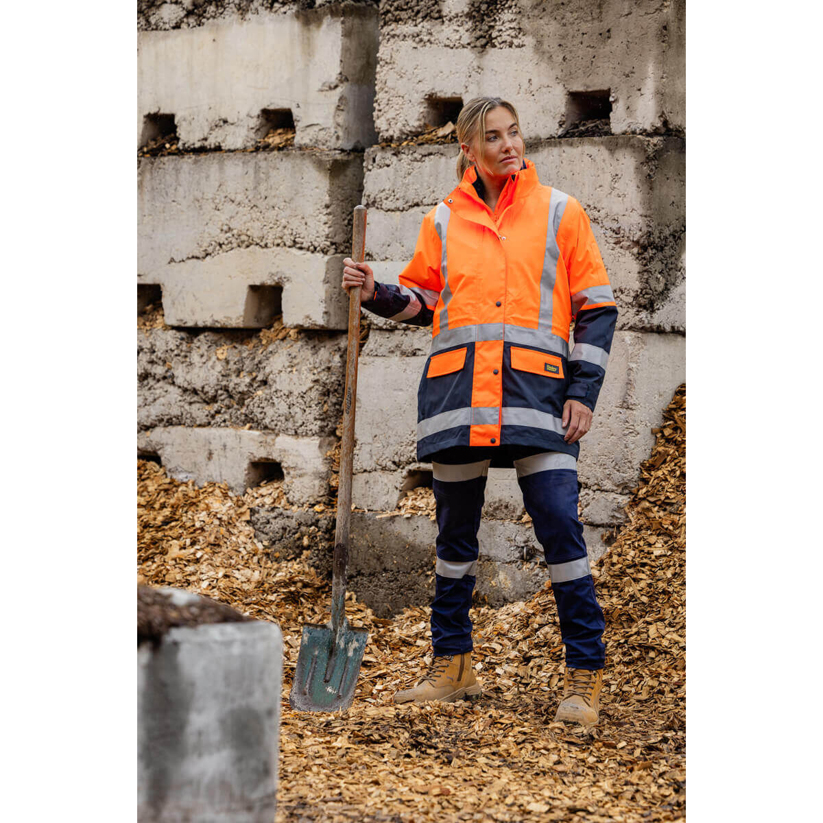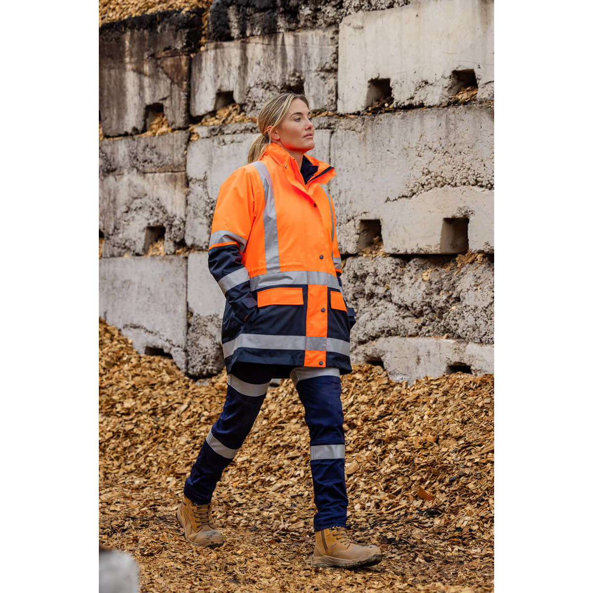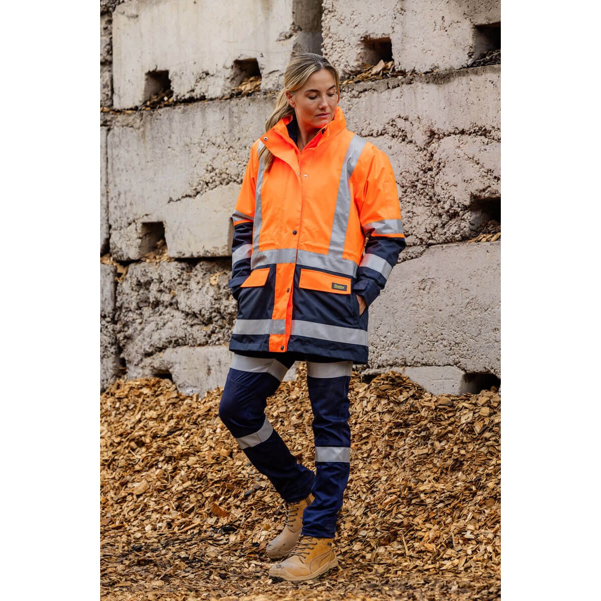 Bisley BKL6975 Women’s Taped Hi Vis 5 In 1 Rain Jacket Orange/Navy