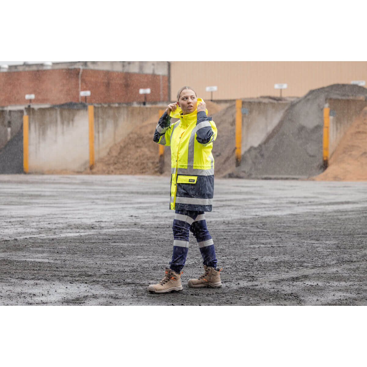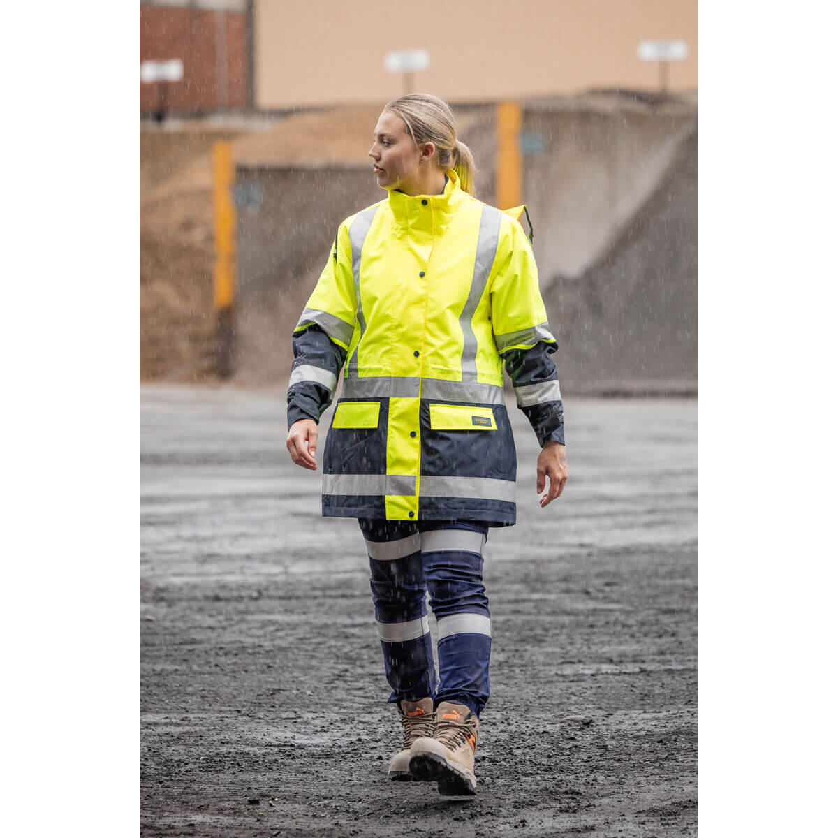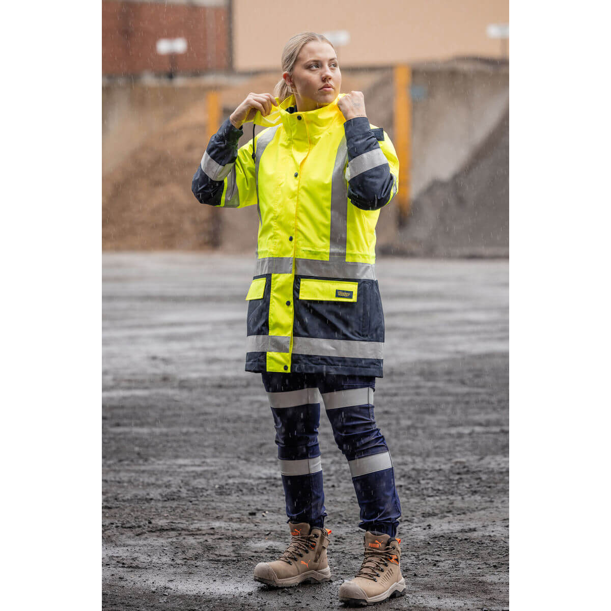 Bisley BKL6975 Women’s Taped Hi Vis 5 In 1 Rain Jacket Orange/Navy